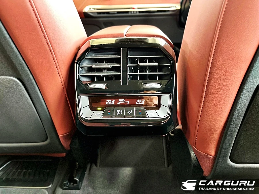 ระบบปรับอากาศเป็นอีกจุดที่อยากจะเล่าคือ เมื่อเปิดรถระบบแอร์จะทำงานไว้ก่อน พอเริ่มกดปุ่มสตาร์ตก็จะสามารถขับไปได้ทันทีและแอร์ก็เย็นฉ่ำ ๆ ได้เร็วทันใจ สามารถปรับอุณภูมิ แนกได้ 6 โซน คือ หน้า-หลัง, หน้าแยกซ้าย-ขวา, หลังแยกซ้ายขวา ปรับแรงลมแยกได้แบบหน้า-หลัง พร้อมช่องแอร์ทั่วรถด้านหลังมีช่องแอร์บริเวณเสากลางและตอนท้ายคอนโซลกลาง และพื้นที่ด้านหลังเก็บของใหญ่โตและสามารถพับเบาะได้ด้วยสวิตช์ไฟฟ้า แต่ตอนพับขึ้นต้องได้มือดึงนะครับ