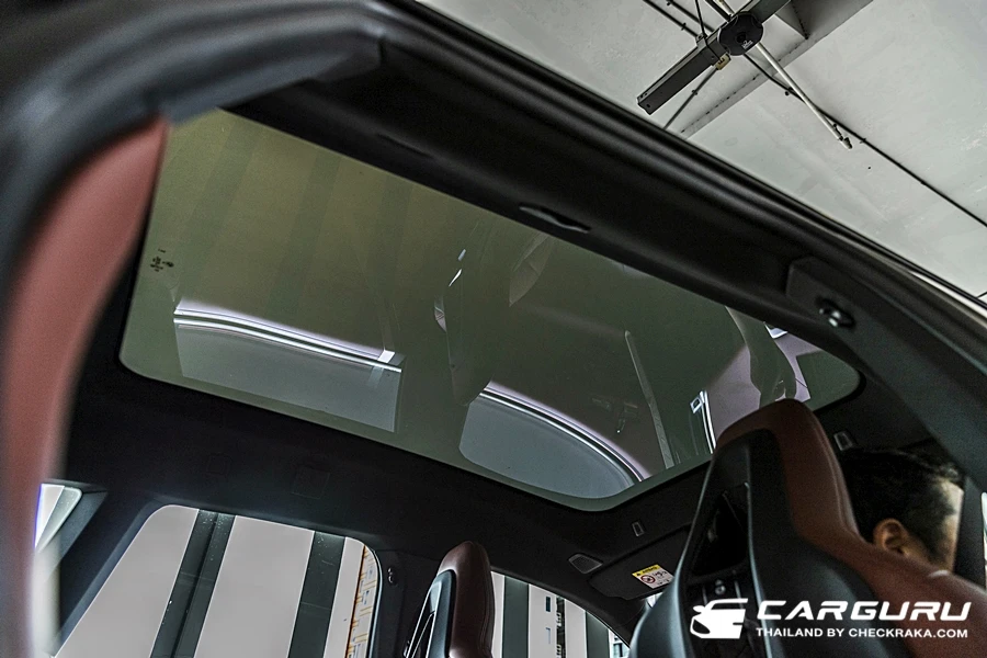 ด้านตัวรถใหญ่โตสมฐานะหลังคาพาโนรามิคในสไตล์ "Sky Sounge" เปิดไม่ได้นะ แต่ว่าความดฟี้ยวคือ ตัวแผ่นกระจกสามารถปรับลดแสงได้ด้วยปุ่มเดียว ระบบกระจกแบบแม่เหล็กไฟฟ้าที่ทำให้ตัวกระจกขุ่นหรือใส่ได้ ด้วยระบบ PDLC (Polymer Dispersed Liquid Crystal) ซึ่งลดความร้อนได้จริงจังมาก!