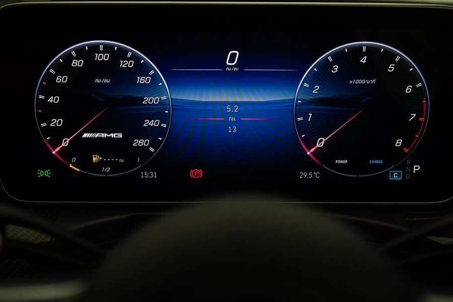 หน้าจอธีมพิเศษของ AMG การวัดแทร็กสนาม และการเรียนรู้ด้วยระบบ AI ที่จะผสานเข้ากับการทำงานของโหมด routine ทำให้สามารถเรียนรู้ข้อมูลของผู้ขับขี่แต่ละบุคคล และบันทึกไว้ในระบบเพื่อความสะดวกสบายแบบอัตโนมัติ นอกจากนี้ยังมาพร้อม AMG Head-up Display, MBUX augmented reality for navigation และระบบเสียง Burmester® 3D surround sound system ลำโพง 17 ตัว กำลังขับ 710 วัตต์ พร้อม Dolby Atmos® ช่วยมอบเสียงเพลงที่คมชัดสมจริงรอบทิศทางราวกับอยู่ในสตูดิโอ