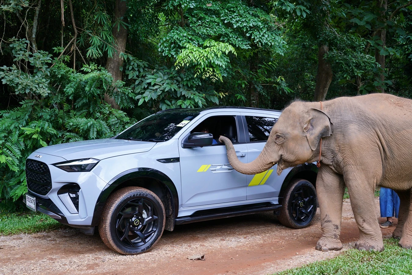 นอกจากขับรถทางไกลมาถึงที่นี่แล้ว ยังได้นำรถอีซูซุ MU-X RS มาร่วมเดินกับสื่อฯ และช้าง ซึ่งจะมีควาญช้างคอยดูแลและมีผู้เชี่ยวชาญที่อธิบายเกี่ยวกับมูลนิธิโกลเด้น ไทรแองเกิ้ล เอเชียน เอเลเฟนท์ (ที่ก่อตั้งขึ้นในปี โดยกลุ่มโรงแรมอนันตรา เพื่อช่วยเหลือและพัฒนาคุณภาพชีวิตช้างในประเทศไทยและแถบเอเชีย ช่วยแก้ปัญหาช้างเร่ร่อนและการลดจำนวนช้างบนท้องถนน สื่อมวลชนได้สัมผัสความน่ารักอย่างเป็นธรรมชาติของบรรดาน้องช้างที่นี่เป็นอย่างมาก ก่อนออกเดินทางไปต่อที่ศูนย์พัฒนาเด็กเล็กบ้านดอยสะโง๊ะตำบลศรีดอนมูล อำเภอเชียงแสน แหล่งเรียนรู้ของหนูน้อยชาวเขาปฐมวัยอายุระหว่าง พร้อมบริจาคสิ่งของเครื่องใช้ต่างๆ รวมถึงมอบอาหารกลางวันให้กับน้องๆ และบุคลากรที่โรงเรียน หลังจากอิ่มอกอิ่มใจกันแล้วก็เดินทางไปพักรับประทานมื้อกลางวันที่ร้านอาหารเบลนด์สุขคาเฟ่สไตล์ฟาร์มที่เต็มไปด้วยแปลงผักออร์แกนิคที่ทางร้านปลูกไว้เป็นวัตถุดิบในการปรุงอาหาร นอกจากจะปลูกเองแล้วก็ยังมีการอุดหนุนผลผลิตจากเกษตรกรในชุมชน เพื่อสร้างรายได้ให้กับชุมชนโดยรอบอีกด้วย เรียกได้ว่าเป็นพื้นที่แห่งการปันสุขอย่างแท้จริง ก่อนเดินทางกลับก็ได้มีโอกาสมาสร้างสรรค์งานศิลปะกันที่คาเฟ่และ ชื่อดังของเชียงราย เพื่อทำ เพ้นท์เสื้อสุดครีเอทีฟ ในสไตล์ตัวเองอีกด้วย สรุปการขับ อีซูซุ MU-X รุ่น RS 3.0 RS AT นับว่าเพียงพอแล้วสำหรับการเป็นรถคันเดียวของบ้านที่พาไปท่องเที่ยวใกล้ไกลได้ทั้งครอบครัว นั่งสบายตลอดการเดินทาง และเพลิดเพลินไปกับระบบอินโฟเทนเม้นต์ที่เชื่อมต่อกับสมาร์ทโฟนแบบไร้สาย เล่นเพลงโปรดจากแอพฯ Spotify ขับกล่อมความบันเทิงไปตลอด นอกจากนี้ตัวเบาะหนังทำจากวัสดุนุ่มอย่างดีสัมผัสก็ยอดเยี่ยมทำให้นั่งในฝั่งผู้โดยสารหลับได้อย่างไม่รู้ตัว ทริปนี้ขับจากเชียงใหม่ไปเชียงราย 2 วัน 1 คืน สิ้นสุดการเดินทางที่สนามบินแม่ฟ้าหลวง มองอัตราสิ้นเปลืองจากการขับ 2 วันที่ทางส่วนใหญ่เป็นถนนขึ้นลงทางชันและดอยได้ตัวเลขราว 12 กม./ลิตร มีผู้โดยสารนั่งในรถทั้งหมด 3 คน พร้อมสัมภาระ นับว่าสมเหตุสมผลเมื่อเทียบกับตัวรถและพิจารณาจากเส้นทาง และสมรรถนะที่ได้จากขุมพลังดีเซลเทอร์โบ บลูเพาเวอร์