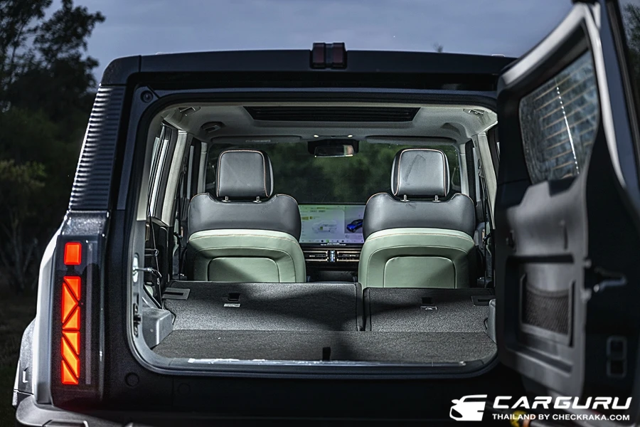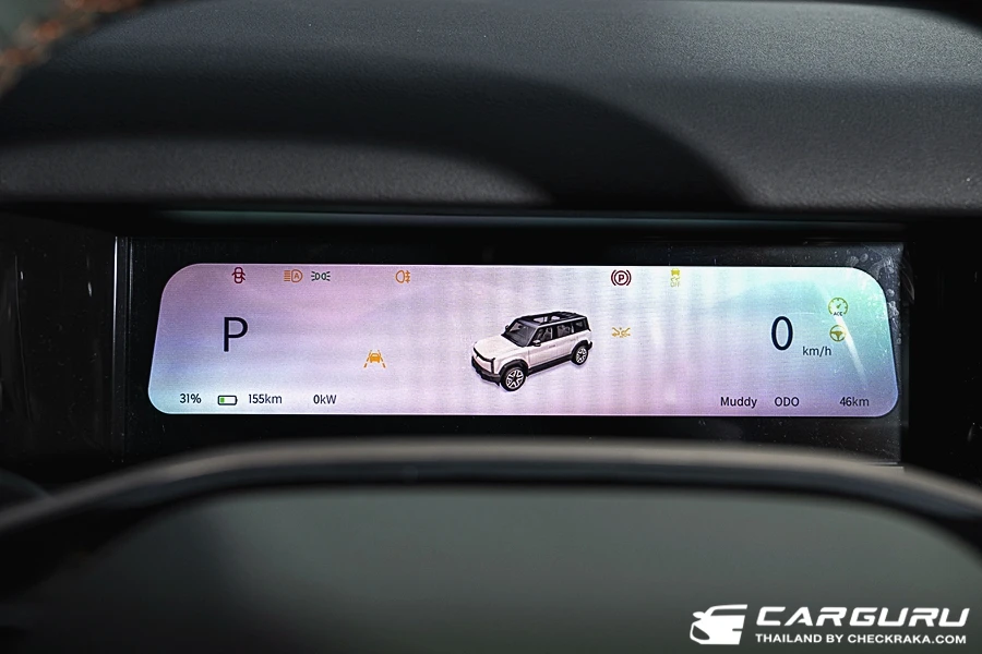 เห็นทรงกล่องเหลี่ยมจัดแบบนี้ลุยออฟโร้ดได้ดีเกินคาดจะขับบนทางดำหรือทางเรียบทั่วไปแล้วจะแย่ไหม? ยอมรับว่าแรก ๆ ก็คิดแบบนี้เลยครับ แต่หลังจากขับออกถนนปกติ อ่าวทำไมขับสบายจัง พลังมอเตอร์ไฟฟ้าแรงเหลือ ๆอยูแล้ว แต่เรื่องของความสบายในการขับขี่ เช่น น้ำหนักพวงมาลัยที่ปรับระดับได้ 3 ระดับ ความแม่นยำและคมกระชับของพวงมาลัยที่เลี้ยวได้ตามมือ คล่องตัวด้วยขนาดตัวรถที่ไม่ใหญ่จนเทอะทะขนาดราว ๆ ATTO 3/CR-V เจนที่แล้ว/Corolla Cross ประมาณนี้ครับ