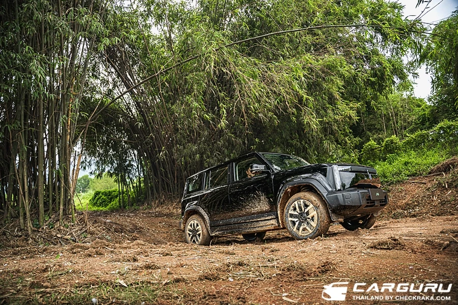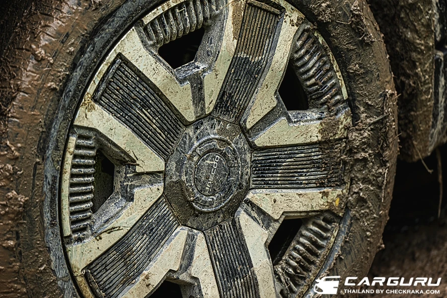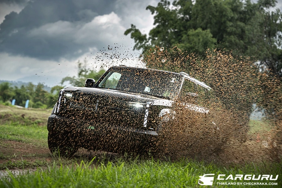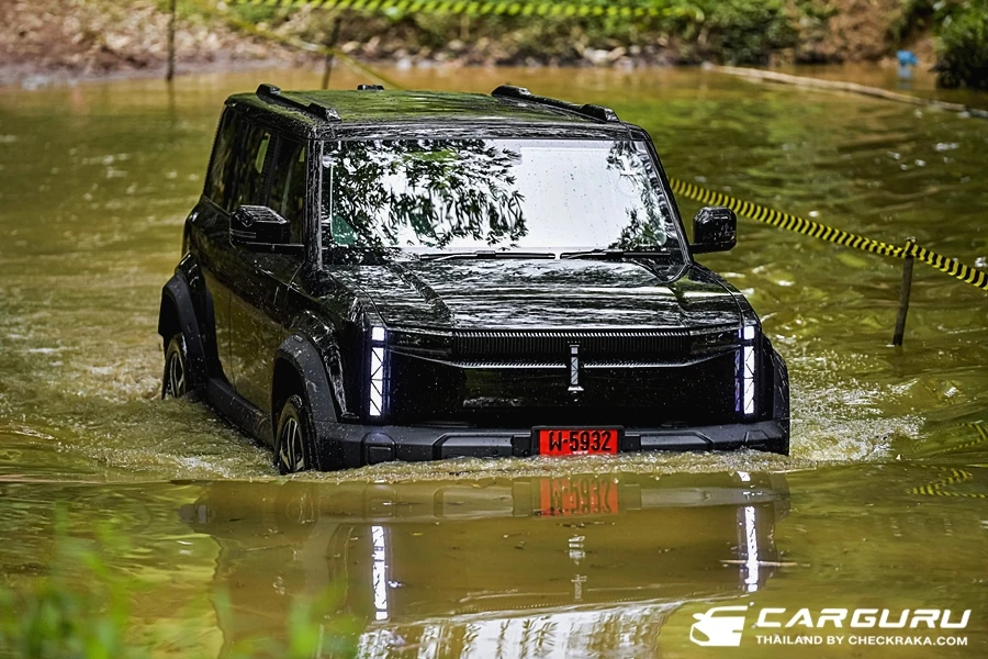 ลุยน้ำสูงเกือบ 60 ซม. เป็นเรื่องง่าย เมื่อขับผ่านบ่อน้ำจำลองของสนามแห่งนี้มีความลึกราวกว่า 50 ซม. ผ่านสบาย ๆ ครับ และที่สำคัญแบตฯ มีระบบซีลกันน้ำอย่างดี และไม่ต้องเรื่องระบบสายไฟช็อตเพราะผ่านมาตรฐานด้านความปลอดภัย และยังหมดห่วงน้ำเข้ากรอกอากาศเพราะ "ไม่มีครับ" 55555 และสุดท้ายต้องบอกว่าการขับลุยครั้งนี้ใช้ยางเดิมติดรถหรือยาง H/T ทั่วไปจากแบรนด์ GITI อีกด้วย แต่กลับขับลุยภาพผิวเส้นทางแบบนี้ได้แบบงง ๆ