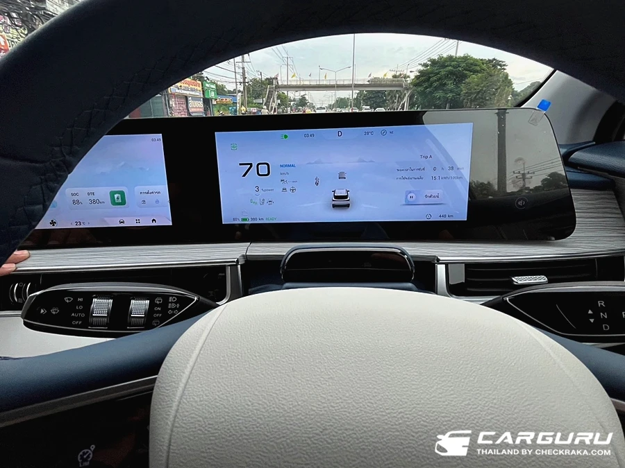 ช่วงล่างที่ต้องจึ้ง!...อีกรอบ ให้ความแน่น หนึบ กระชับ เกาะและเงียบพอตัว (ขับในความเร็วกลาง ๆ นะครับ เพราะเวลาจำกัดไปได้ใกล้ ๆ เท่านั้น) วิสัยทัศน์โปร่งโลางสบาย หลังคาสูงไม่อึดอัด ระบบเบรกนุ่มเท้าคล้ายรถสันดาปทั่วไปเลย และระบบความปลอดภัยจะกเต็มด้วย ADAS ที่มาแบบครบ ๆ