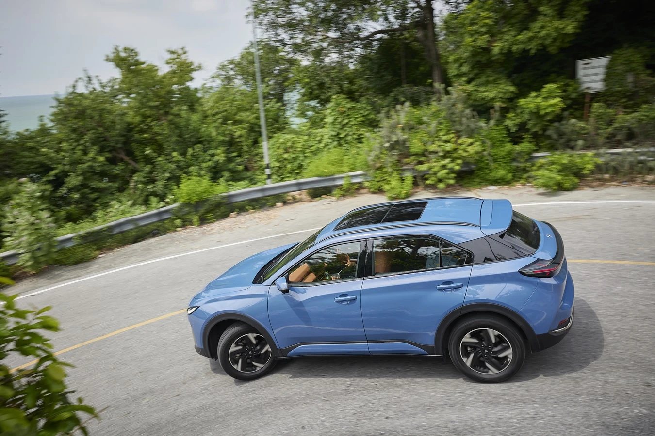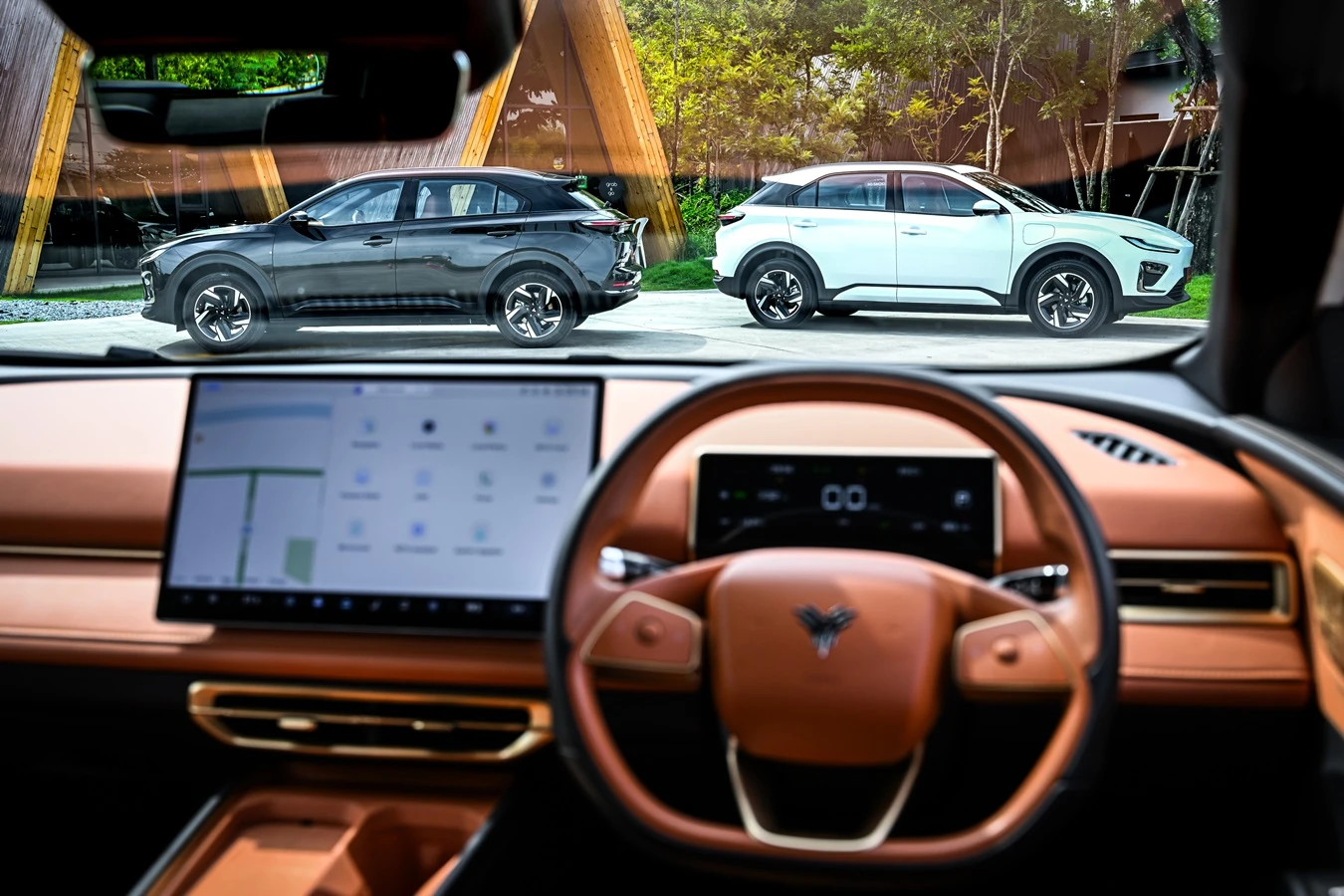 เริ่มแรกผู้เขียนนั่งในตำแหน่งเบาะผู้โดยสารแถวหน้า ทดลองปรับเบาะไฟฟ้าจนได้ระยะที่พอดีและนั่งสบาย วัสดุบุนุ่มหลายจุดให้ความรู้สึกซอฟท์ แต่การใช้สีน้ำตาลในห้องโดยสาร รวมทั้งจุดสัมผัสมือที่ออกโทนเดียวกัน ค่อนข้างแปลกและต่างจากที่คุ้นเคย มุมการมองเห็นด้านหน้านับว่าชัดเจนเห็นกว้าง การลองปรับระบบฯต่างๆ ภายในตัวรถต้องอาศัยการทำความคุ้นชินสักพัก เพราะบนหน้าคอนโซลนอกจากจอกลางแสดงผลขนาดใหญ่ 15.6 นิ้ว ก็ไม่มีปุ่มใดๆให้สัมผัส ต้องใช้เมนูหน้าจอปรับเท่านั้น ด้านหนึ่งแสดงถึงความทันสมัย แต่ส่วนตัวก็ยังชอบให้มีการแยกปุ่มปรับมือเองในฟังก์ชันที่สำคัญและใช้บ่อย เช่น ระบบปรับอากาศ ฯลฯ ในส่วนของการเชื่อมต่อกับสมาร์ทโฟน ไม่ว่า แอนดรอยด์ ออโต และแอปเปิ้ล คาร์เพลย์ ตอนที่ขับทดสอบยังอยู่ในช่วงของการรออัพเกรดระบบ ต่อไปจะใช้ได้แน่นอน