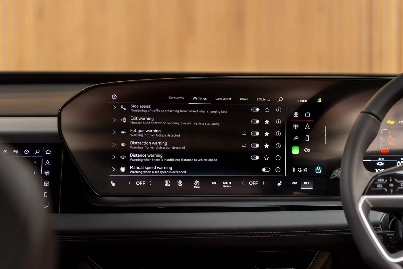 • Curved MMI panoramic display หน้าจอระบบสัมผัสประกอบไปด้วย 11.9 นิ้ว MMI virtual cockpit plus และ 14.5 นิ้ว MMI touch display ที่มีความยาวตั้งแต่ฝั่งคนขับไปจนถึงฝั่งคนนั่ง และหันเข้าหาคนขับเพื่อการใช้งานที่ง่ายและสะดวก