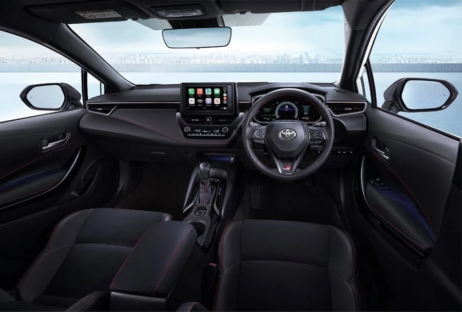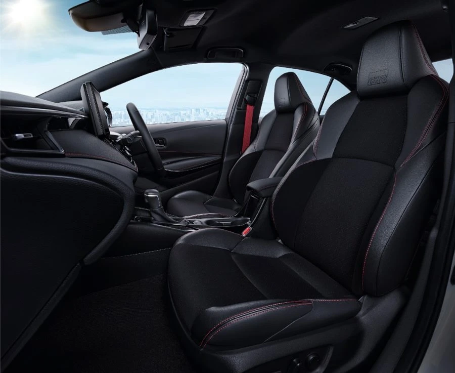 ภายในมีการเพิ่มความสปอร์ตในหลาย ๆ จุด อาทิ เบาะนั่งคู่หน้าทรงสปอร์ต หนัง Suede แบบเจาะรูและหนังสังเคราะห์ เดินด้ายสีแดง พร้อมสัญลักษณ์ GR ปรับไฟฟ้า 8 ทิศทาง และ Lumbar Support แบบไฟฟ้า ใหม่, เข็มขัดนิรภัยสีแดงสไตล์ GR SPORT ใหม่