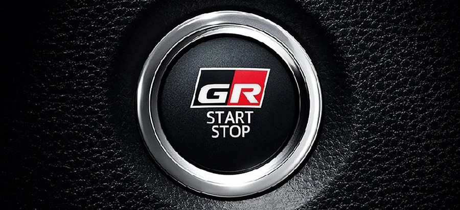 ภายในเดินด้ายสีแดง ตกแต่งสีแดงและสีเงิน Smoked Silver ใหม่, พวงมาลัยตกแต่งสัญลักษณ์ GR ใหม่, ปุ่ม Push Start และ Smart Key ตกแต่งสัญลักษณ์ GR