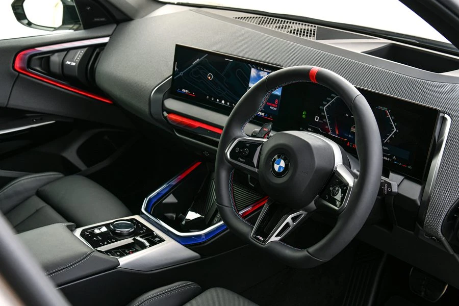 หน้าจอควบคุมที่ใช้ระบบ BMW iDrive รุ่นล่าสุด พร้อมฟังก์ชันการสั่งงานจากระบบปฏิบัติการ BMW Operation System 8.5 ทำให้การใช้งานฟังก์ชันและบริการดิจิทัลต่าง ๆ ทั้งสะดวกรวดเร็ว สำหรับผู้ขับขี่ หน้าจอโค้ง BMW Curved Display จะแสดงข้อมูลเกี่ยวกับสมรรถนะของรถในสไตล์เดียวกับรถยนต์ตระกูล M รุ่นอื่น ๆ และยังจัดวางหน้าจอให้หันมาทางผู้ขับขี่เล็กน้อย จึงสามารถอ่านจอได้โดยไม่ต้องละสายตาจากท้องถนนข้างหน้า เช่นเดียวกับหน้าจอ Information Display ขนาด 12.3 นิ้วบริเวณหลังพวงมาลัย และจอ Control Display ขนาด 14.9 นิ้ว โดยมีไฟ M Shift Lights ช่วยให้สัญญาณเปลี่ยนเกียร์ติดตั้งอยู่ด้านบนจอ Information Display ที่อยู่เหนือพื้นที่สำหรับการควบคุมฟังก์ชันต่าง ๆ ของตัวรถ ระดับการยึดเกาะถนน และระบบขับเคลื่อนสี่ล้อ M xDrive ที่ปรากฏบนหน้าจอด้านล่าง