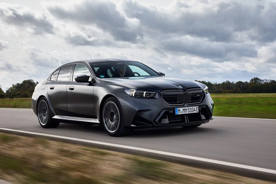 นอกเหนือจากสมรรถนะที่น่าทึ่งแล้ว M5 ใหม่ ยังมีงานออกแบบที่เปี่ยมด้วยความสง่างามในสไตล์สปอร์ตตัวแรง ด้วยซุ้มล้อและสเกิร์ตข้างที่เด่นสะดุดตา ล้ออัลลอยน้ำหนักเบาแบบ M ขนาด 20 นิ้วที่คู่หน้า และ 21 นิ้วที่คู่หลัง ในดีไซน์ Double spoke สีดำ กันชนหน้าที่มีเส้นสายบึกบึน และโลโก้ M5 ที่ประทับนูนอยู่บนส่วน Hofmeister kink