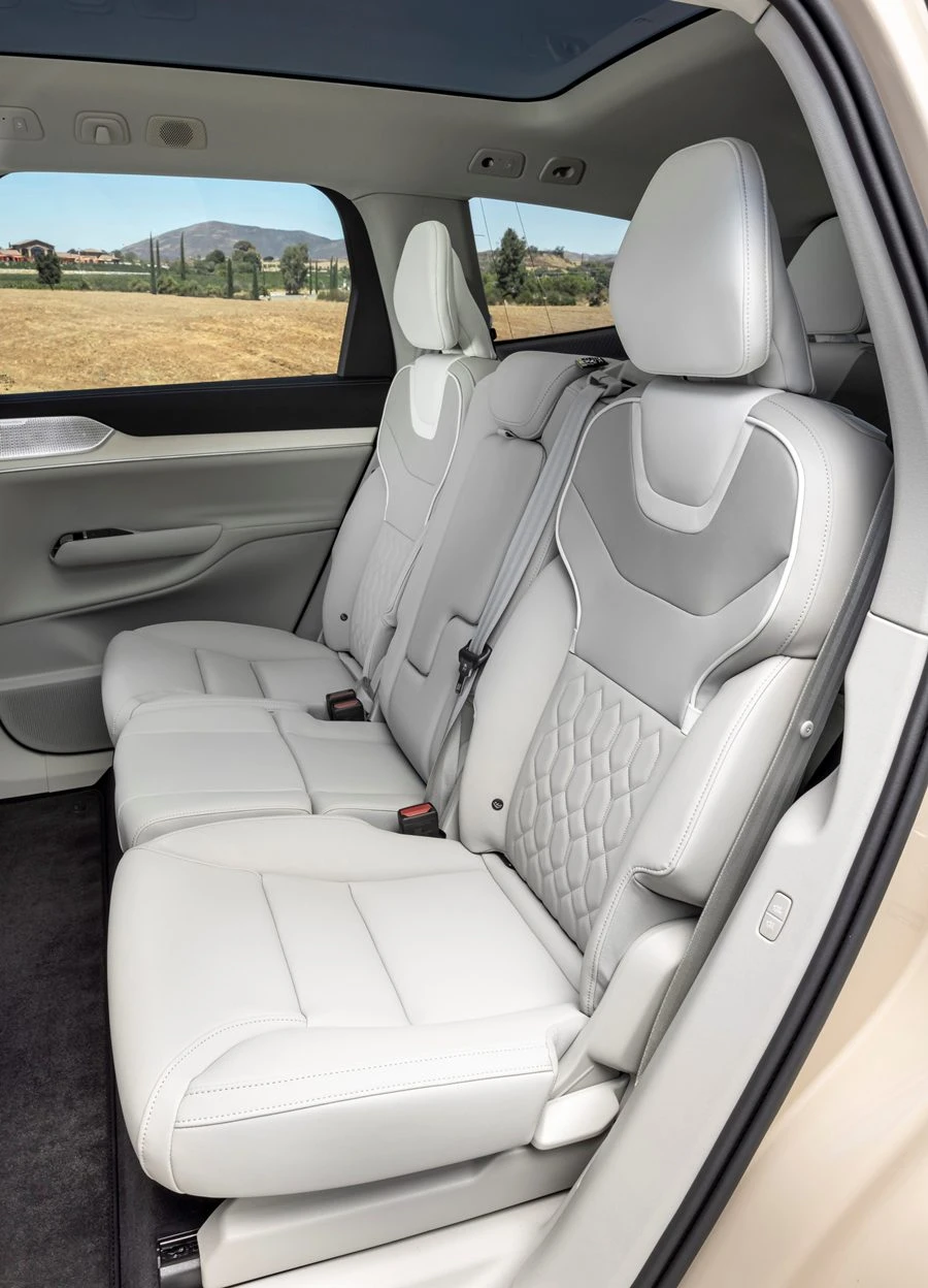 เบาะที่นั่งถูกออกแบบตามหลักสรีระศาสตร์โดยตัวรถมาพร้อมตัวเลือกที่นั่งสูงสุด 7 ที่ โดยแถวที่สองยังมาพร้อมที่นั่งเสริมของเด็กหรือบูสเตอร์ (booster) เพื่อมอบความอุ่นใจในการเดินทางให้ทั้งครอบครัว ที่นั่งสามารถปรับตำแหน่งได้สูงสุดถึง 8 ทิศทาง พร้อมการปรับความกระชับของเบาะเพื่อรองรับเอวและสะโพก รถยังมาพร้อมตัวเลือกเบาะที่รองรับการนวด และการระบายอากาศ ที่นั่งแถวสองสามารถพับลงได้อย่างอิสระเพื่อการเข้าถึงที่นั่งของผู้โดยสารแถวสามได้อย่างสะดวก และยังมีที่เหลือพอสำหรับพักเท้าของผู้โดยสารแถวสามพร้อมที่วางแก้ว และพอร์ตชาร์จแบบ USB-C
