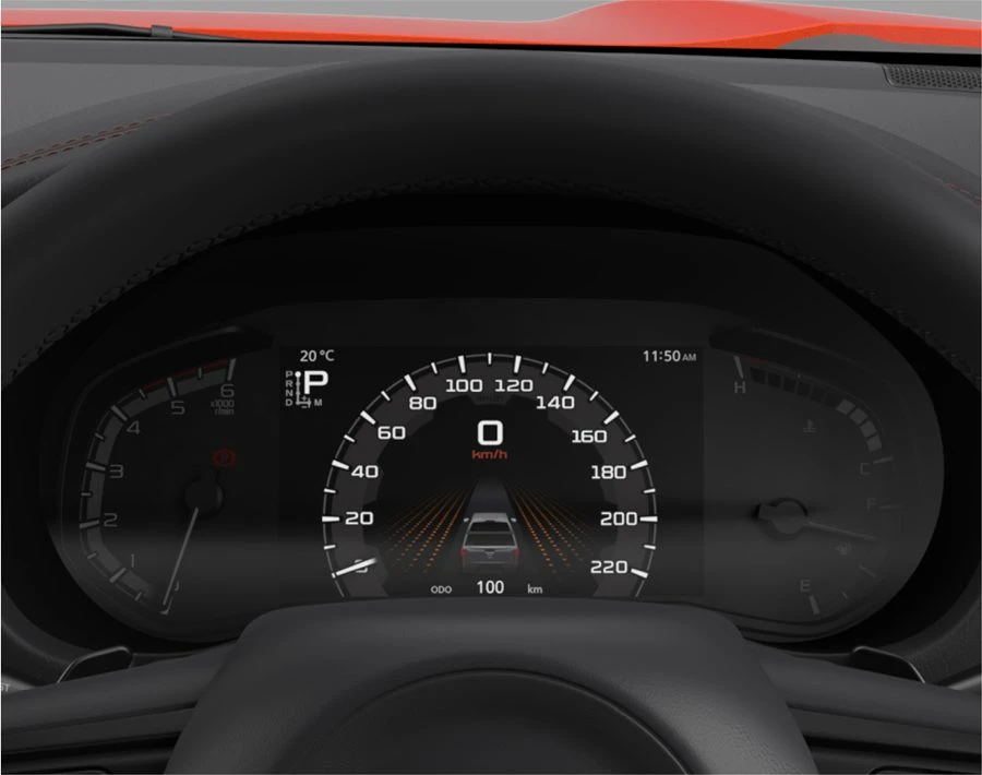 ยกระดับเทคโนโลยีความสะดวกสบายและความปลอดภัยอย่างครบครัน ด้วยพร้อมหน้าจอ MID แบบสี ขนาด 7 นิ้ว พร้อมด้วย Vehicle Tilt information เพิ่มความสะดวกสบายด้วยช่องเสียบ USB-C หน้าจอ Center Display ขนาด 8 นิ้ว และ 9 นิ้ว ที่รองรับระบบ Apple CarPlay และ Android Auto แบบไร้สาย ตอบรับทุกความต้องการของคนยุคใหม่ได้อย่างแท้จริง