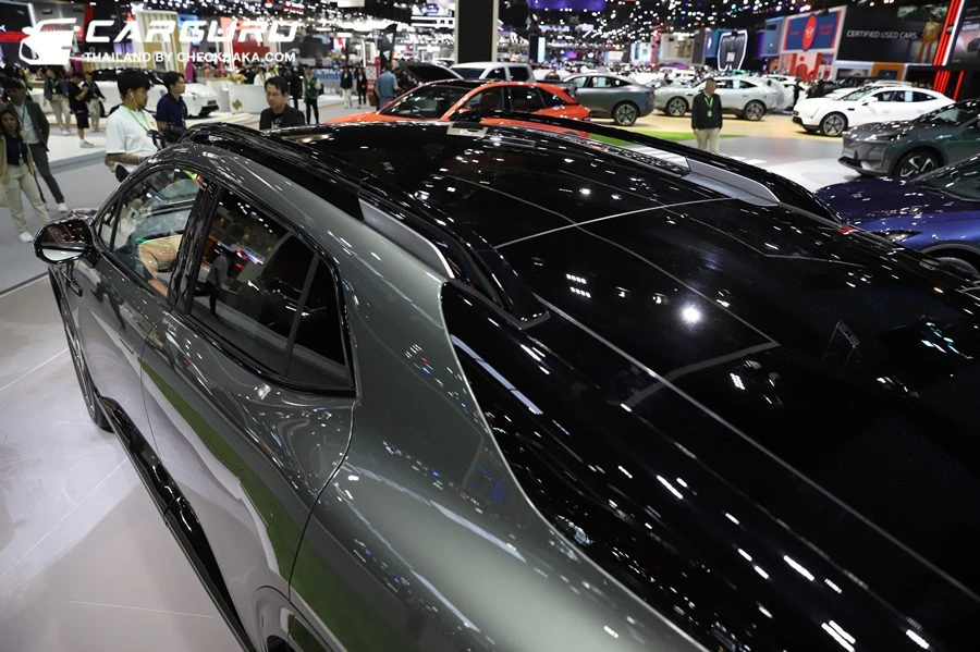 ด้วยดีไซน์ภายนอกดีไซน์สุดแกร่ง สไตล์โมเดิร์น ทำให้ตัวรถมีขนาดใหญ่ที่ยาวกว่า 5 เมตร และกว้างเกือบ 2 เมตร แต่ก็มีความสปอร์ตและลู่ลม แต่ก็ยังคงความแข็งแกร่งด้วยค่าสัมประสิทธิ์แรงต้านลมต่ำเพียง 0.237 และจะมากับราวหลังคาอเนกประสงค์, ล้ออัลลอยขนาดใหญ่ 21 นิ้ว พร้อมฝาครอบล้อ, มือจับประตูไฟฟ้าแบบซ่อน, ฝาปิดช่องชาร์จไฟเปิด-ปิดได้แบบไฟฟ้า, ไฟหน้าและไฟท้ายแบบ Star Ring LED ที่ดูล้ำสมัย, ช่องเก็บสัมภาระใต้ฝากระโปรงหน้าขนาดใหญ่ถึง 131 ลิตรและหลังคากระจกบริเวณท้ายรถ ฝาท้าย และกระจกหลังเปิด-ปิดแบบไฟฟ้า ที่สามารถปรับรูปแบบได้หลากหลายให้เหมาะกับการใช้งาน