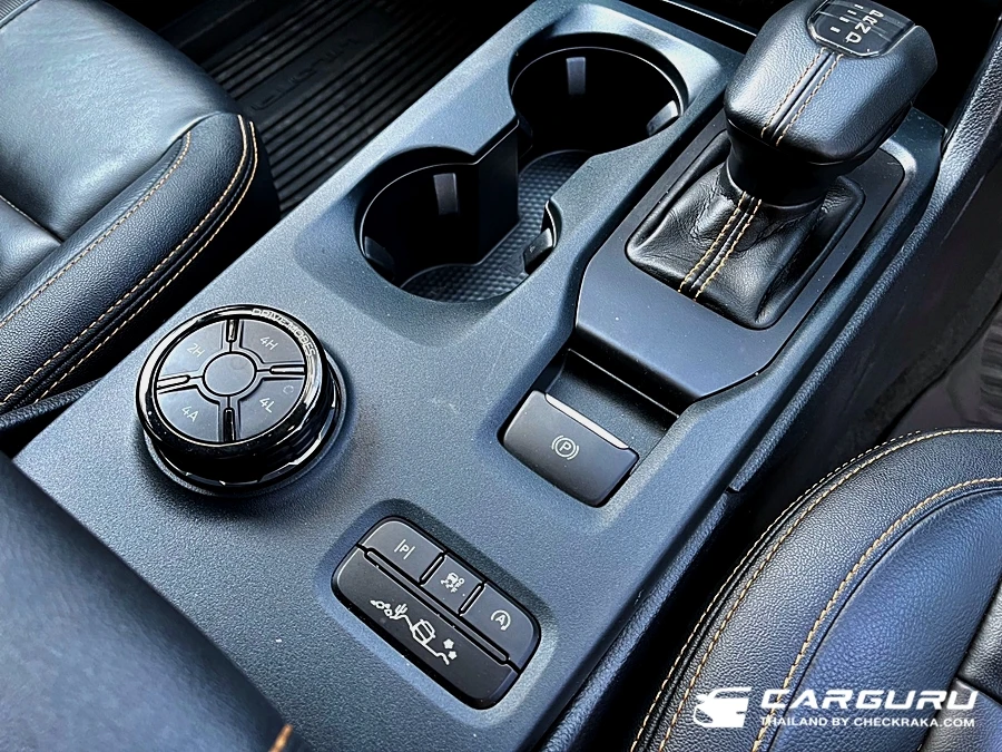 สายลุยอาจจะต้องชอบกับ 6 โหมดขับขี่และเลือกระบบขับเคลื่อนได้ตามต้องการ เช่น ขับเคลื่อน 4 ล้อ อัตโนมัติ (4A) ที่จะปรับเปลี่ยนการขับเคลื่อนทั้ง 4 ล้อ ตามสภาพถนนให้เอง ปลอดภัยมั่นใจแบบรถ 4WD Full Time หรือจะเลือก 4H ขับในทางลื่น ๆ แบบความเร็วสูงเพิ่มความมัน่ใจมากขึ้นด้วยการขับเคลื่อน 4 ล้อ ตลอดเวลา หรือจะลุยหนัก ๆ ดิบ ๆ ต้องไป 4L ที่จะมีระบบล็อคเฟืองท้ายเพื่อให้ผ่านอุปสรรคไปได้อย่างง่ายดาย หรือจะเข้าป่าจัดหนักกับเส้นทางแบบ Off-Road เต็มรูปแบบก็มีโหมดให้เลือกพร้อมลุย Narmal, ECO, TOW/Hael, Spippery, Mud/Ruts และ Sand เอาที่สบายใจได้เลย แต่สุดท้ายถ้าขับใยเมืองเป็นหลักก็เลือก 2H เพื่อความประหยัดขับง่ายขึ้น แต่อย่าลืมปรับมาใช้งานระบบขับเคลื่อน 4 ล้อ บ้าง เพราะต้องให้ระบบทำงานเอาไว้บ้างจะได้พร้อมใช้งานจริง ๆ เมื่อต้องการครับ และยังไงก็ต้องเสียค่าบำรุงรักษาระบบขับเคลื่อนทั้งหมดอยู่แล้ว เดี๋ยวจะไม่คุ้ม!