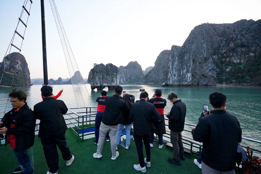 กิจกรรมไฮไลท์ของการมาเที่ยวชมอ่าวฮาลองคือ การล่องเรือชมทัศนียภาพอันงดงามของเกาะต่าง ๆ และแวะชมถ้ำสวรรค์ (Thiên Cave) ที่สวยงามด้วยหินงอกหินย้อยรูปทรงสวยงามแปลกตาแตกต่างกันออกไป หลังจากเที่ยวชมอ่าวฮาลองกันอย่างจุใจแล้ว จึงเดินทางต่อเพื่อไปรับประทานอาหารเย็นแบบบุฟเฟต์นานาชาติที่ภัตตาคาร Sen Ha Thanh ที่มีชื่อเสียงมากในเมืองฮานอย กับความหลากหลายของเมนูให้ทุกคนได้อิ่มอร่อย ก่อนเดินทางเข้าพักที่โรงแรม The Yacht ตามอัธยาศัย