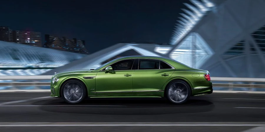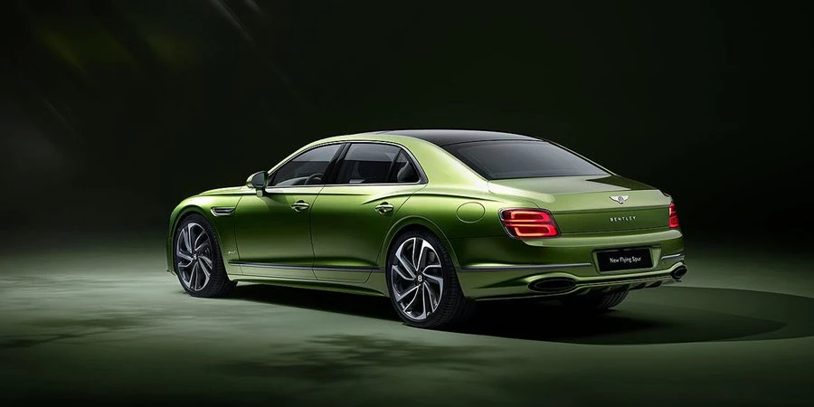 สำหรับเฉดสี Tourmaline Green by Mulliner คือ เฉดสีเขียวใหม่ล่าสุดที่สดใส มีชีวิตชีวา และงดงามจากเกล็ดอะลูมิเนียม เฉดสีเขียวใหม่ได้รับการรังสรรค์ขึ้นด้วยแรงบันดาลใจจากธรรมชาติและสวนมอสอันเขียวชอุ่มในฝั่งตะวันออกโดยช่างฝีมือมากประสบการณ์ และถือเป็นเฉดสีเขียวที่ตีความสีเขียวในแบบร่วมสมัยของเบนท์ลีย์เพื่อสะท้อนสุดยอดสมรรถนะและประสิทธิภาพในการขับขี่ระดับซูเปอร์คาร์ นอกจากนี้ New Flying Spur Speed ยังมาพร้อมกับความสปอร์ตด้วยล้ออัลลอยด์แบบ Speed Wheel Dark Tint 10 ก้าน ขนาด 22 นิ้วที่มีรูปลักษณ์ที่ร่วมสมัยและโดดเด่นกับการเคลือบโครเมียมสีเข้มให้เข้ากันกับกระจังหน้าแบบ Dark Tint Grilles สีเข้ม ตอกย้ำถึงสมรรถนะอันยอดเยี่ยมของแกรนด์ทัวเรอร์ระดับซูเปอร์คาร์แบบ 4 ประตูรุ่นแรกของแบรนด์ได้อย่างสมบูรณ์แบบ