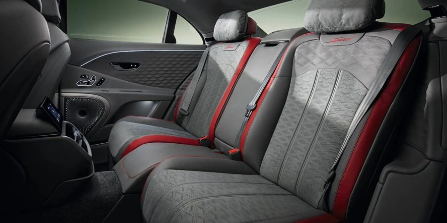 การตกแต่งภายในห้องโดยสารของ New Flying Spur Speed ยังสะท้อนถึงความประณีตและความละเอียดอ่อนอันเป็นเอกลักษณ์ของแบรนด์รถยนต์เบนท์ลีย์ด้วยการออกแบบภายในแบบใหม่หมดจดกับตัวเลือกการเย็บสไตล์ใหม่ การขึ้นรูปเพชรแบบ 3 มิติบริเวณแผงประตูด้วยเฉดสีเทา Gravity Grey ใหม่ และ เฉดสีแดง Hotspur พร้อมด้วยวีเนียร์แบบ High Gloss Carbon Fibre ที่ให้รูปลักษณ์แบบ 3 มิติเพื่อความรู้สึกที่ร่วมสมัยและสปอร์ตยิ่งขึ้น พร้อมด้วยสัมผัสแห่งความสปอร์ตของ Dark Chrome Interior Specification บริเวณมือจับประตู สวิตช์ ตะแกรงลำโพง และรอบห้องโดยสารที่รังสรรค์ขึ้นด้วยโครเมียมสีเข้มที่จะให้ความรู้สึกสปอร์ต และยังเพิ่มความเรียบง่ายให้กับภายในห้องโดยสารเพื่อให้เข้ากับการตกแต่งภายนอกที่ดูสปอร์ตและดุดัน โดยมีเทคโนโลยีภายในห้องโดยสารที่ล้ำสมัยอย่างคุณสมบัติเบาะโดยสารแบบ Wellness พร้อมด้วยระบบกรองอากาศด้วยการสร้างไอออนในอากาศแบบอัจฉริยะและตัวเลือกการปรับท่าทางบนเบาะโดยสารทั้ง 4 ที่นั่งแบบอัตโนมัติพร้อมกับระบบเครื่องเสียง Naim 2,200 วัตต์ 19 ลำโพง พร้อมด้วย Active Bass Transducers ที่ติดตั้งในเบาะโดยสารด้านหน้าและโหมดเสียง 8 โหมดสำหรับผู้ที่รักในเสียงเพลงอย่างแท้จริง นอกจากนี้ กระจกอะคูสติกแบบลามิเนตที่ติดตั้งบริเวณกระจกหน้ารถและกระจกข้างยังจะช่วยลดเสียงรบกวนจากภายนอกลงได้ถึง 9 เดซิเบลเมื่อเทียบกับกระจกแบบธรรมดา และตัวรถยังมาพร้อมกับพื้นที่เก็บสัมภาระด้านหลังขนาดใหญ่ที่สามารถจุได้กว่า 420 ลิตรหรือสามารถบรรทุกกระเป๋าเดินทางขนาดใหญ่ได้ถึง 3 ใบ ตอบโจทย์ความสะดวกสบายในการเดินทางที่เหนือกว่าให้กับทั้งผู้ขับขี่และผู้โดยสาร