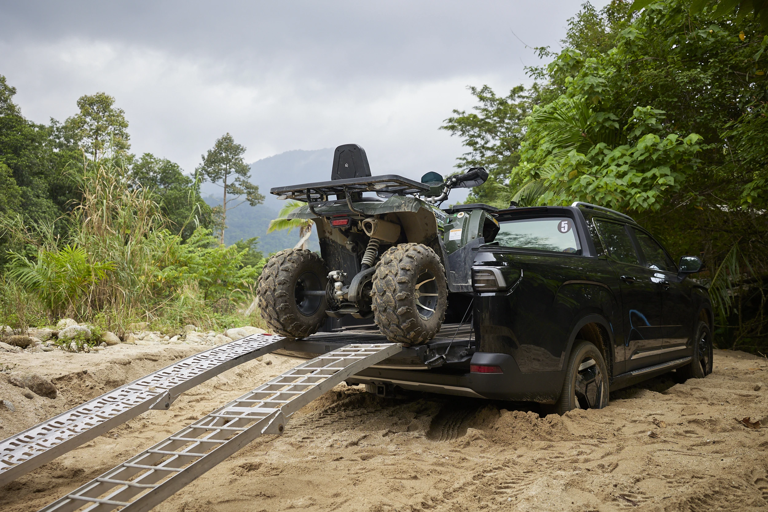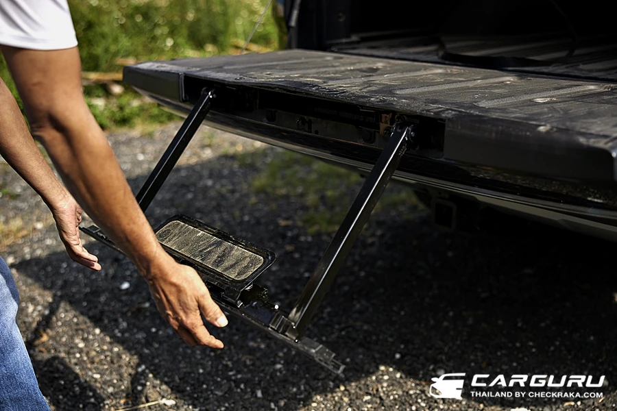 กระบะท้ายฝั่งไฟท้าย Full LED แบบ Buiult-in พร้อมเส้นแนวยาวเชื่อมถึงกัน ดูไกล ๆ คล้าย PPV พี่ใหญ่มะกัน สวยไปอีกแบบ ส่วนตัวชอบมาก ๆ เมื่อเปิดมาฝั่งขวามือจะมีจุดจ่ายไฟสำหรับเครื่องใช้ไฟฟ้า หรือ VtoL ที่เสียบเต้ารับได้ทันที่! ไม่ต้องมาต่อสายจากที่ชาร์จให้วุ่นวาย บนกระบะท้ายตกแต่งด้วยสปอร์ตบาร์และ "แค็ปหลัง" หรือสปอยเลอร์ ที่ดูกลมกลืนกับรถ และในรุ่นท็อปมีบันได้ซ่อนอยู่ในฝากระบะท้ายอีกด้วย