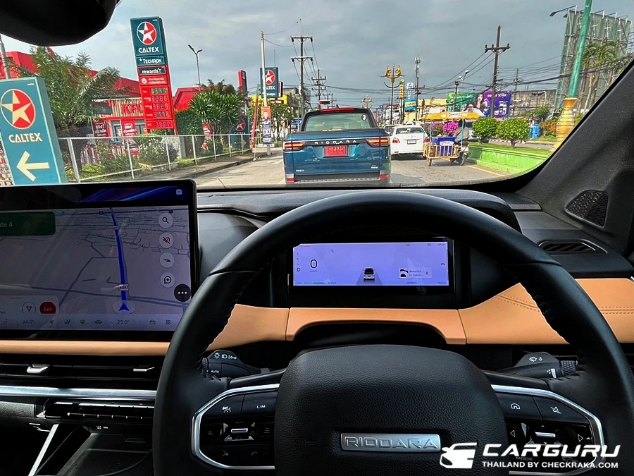 ภายในได้ฟิวแบบรถเก๋งหรือ SUV ไฟฟ้าที่ต่างจากภายในรถกระบะโดยสิ้นเชิง ด้วยจอคนขับ 10.2 นิ้ว แสดงผลการขับขี่ครบถ้วนและชัดเจนดี พร้อมจอกลางขนาด 14.6 นิ้ว รองรับ AppleCarPlay และ Android Auto (อับเดทระบบก่อนส่งมองรถให้ลูกค้า) พวงมาลัยมัลติฟังก์ชั่น พร้อมสวิตช์ควบคุมการใช้งานต่าง ๆ ที่สะดวกไม่ต้องเข้าเมนูหน้าจอ และยังมี สวิตช์สั่งการทำงานต่าง ๆ ที่ใต้จอกลาง ให้ใช้งานได้ทันทีเช่นกัน