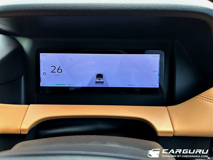 มาตรวัดคนขับมองง่ายชัดเจน แสดงสถานะการใช้งานระบบความปลอดภัยต่าง ๆ ครบถ้วน จอกลางขนาดใหญ่และใช้งานง่าย ๆ และมีสวิตช์ใช้งานระบบที่จำเป็น ๆ อยู่ใต้จอกลาง และแผงคอนโซลกลางก็มีทั้งสวิตช์ปรับโหมดขับขี่ที่มีให้เลือก 7 โหมด (Sand / Mud / Off-road / Wading / Economy / Comfort / Sport) และสวิตช์เลือกการ ReGenerate สวิตช์เปิด-ปิด Auto hold และ เบรกมือไฟฟ้า ที่ส่วนเข่าขวาฝั่งคนขับยังมีสวิตช์ เปิดไฟกระบะท้าย, ปรับแสงสว่างหน้าจอ, ปรับระดับไฟหน้า และเปิดฝากระบะท้ายแบบไฟฟ้า