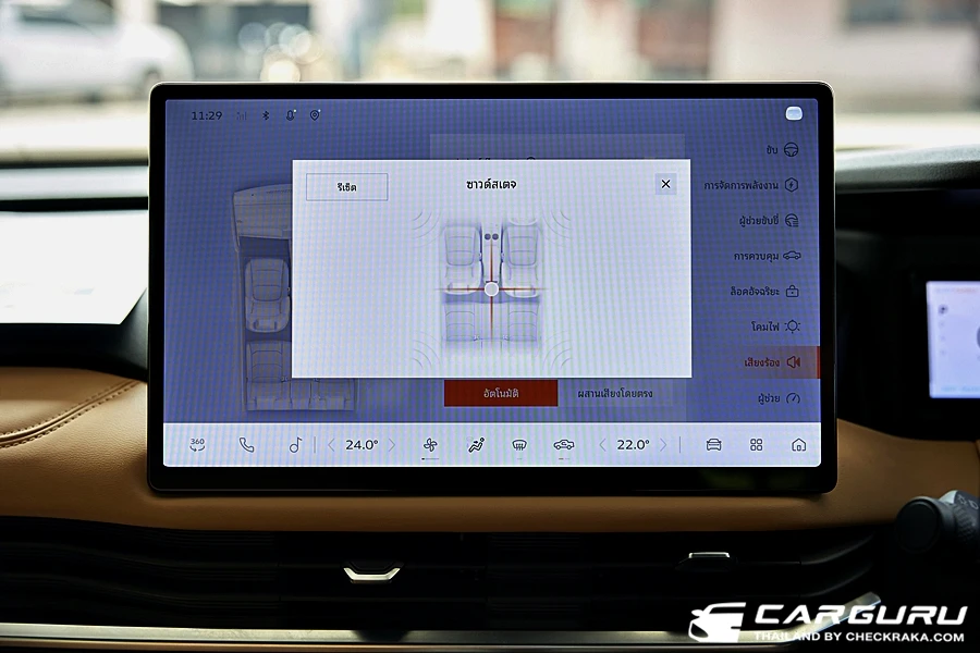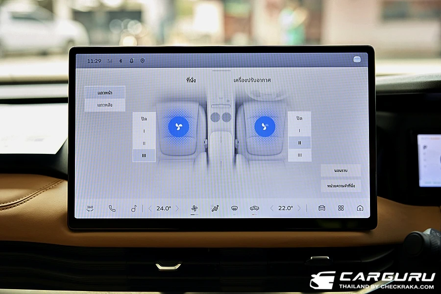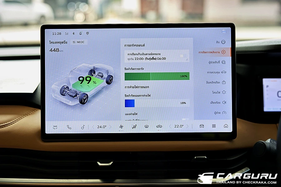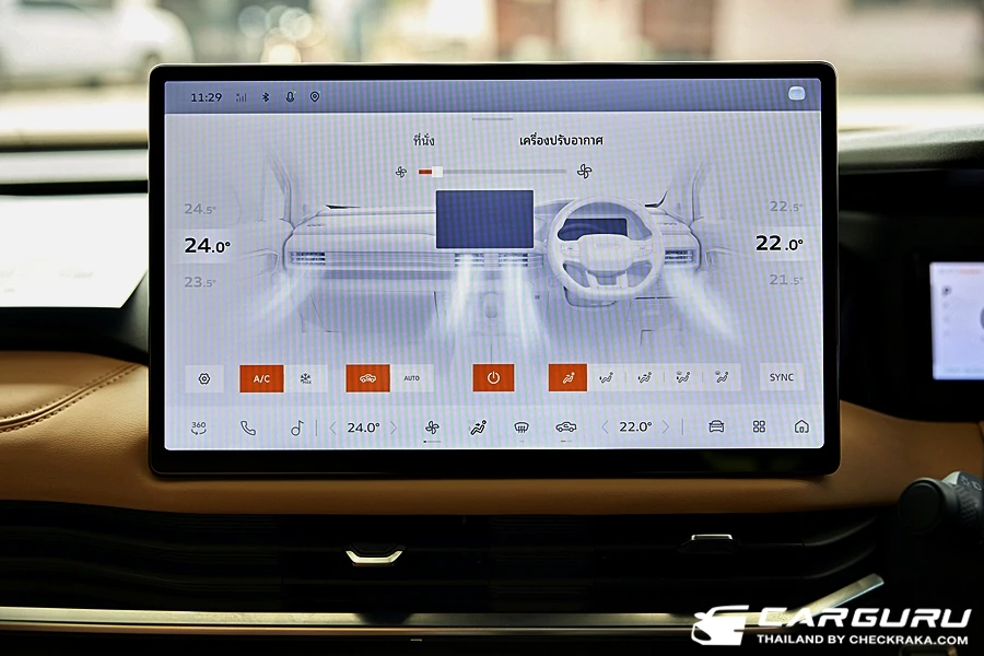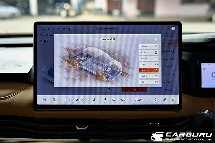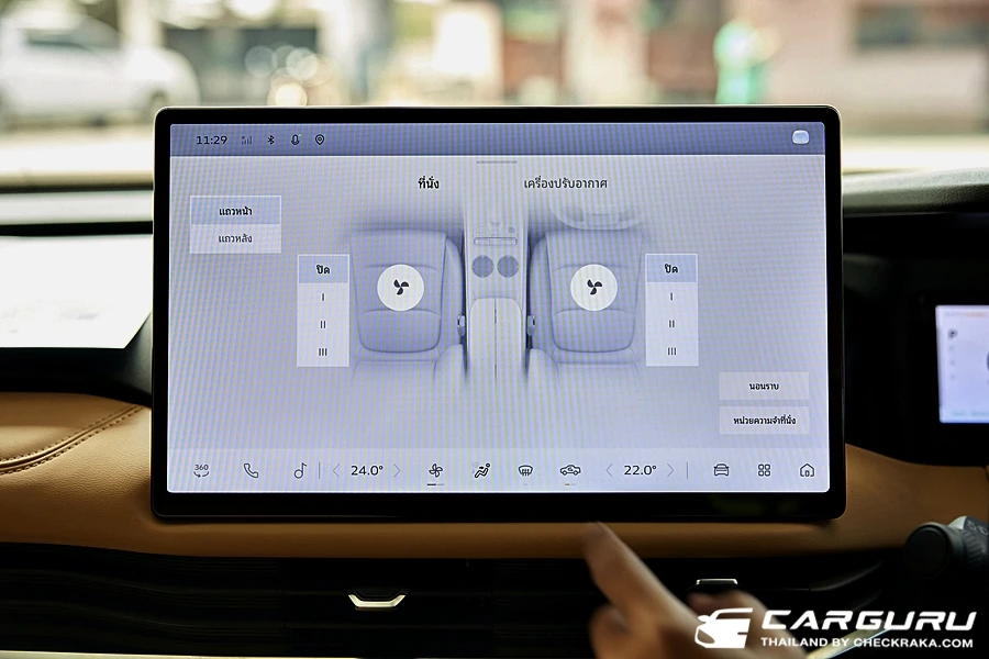 มาที่จอกลางแบบสัมผัสที่มีฟังก์ชั่นการทำงานทั้งควบคุมสั่งการระบบรถยนต์ ความบันเทิงมากับลำโพง 8 ตำแหน่ง ระบบการเชื่อมต่อ Wi-Fi ระบบ Carbit link และแสดงภาพจากกล้องรอบคัน ที่ใช้งานค่อยข้างง่าย เมนูไม่ลึกมาก อย่างการจะดูรายละเอียดของระบบความปลอดภัย, การใช้พลังงานไฟฟ้ารถยนต์, การเปิดปิดระบบต่าง ๆ เพียงแค่กดรูปรถที่เมนูด้างล่างของจอ หรือจะใช้นิ้วรูดปัดขอบจอบนลงมาก็จะมีเมนูทางลัด ที่ตั้งค่าเองได้ด้วย เช่น กดดูกล้องรอบคันก็, เปิด-ปิดระบบเตือนต่าง ๆ ฌหมดกลางคืน หรี่แสงหน้าจอ ฯลฯ