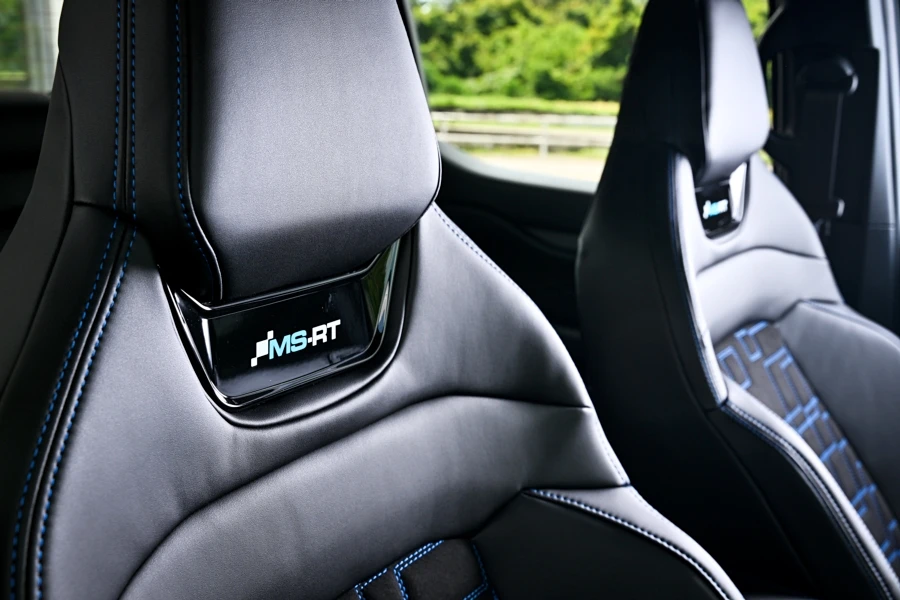 เบาะดีไซน์เฉพาะให้รองรับสรีระขณะขับความเร็วสูง หุ้มด้วยหนังสลับกับ หนัง Alcantara ที่ถูกตัดเย็บเป็นพิเศษ พร้อมเดินด้ายสีฟ้า เป็นเอกลักษณ์เฉพาะ MS-RT สีนํ้าเงินตกแต่งรอบห้องโดยสาร และสัญลักษณ์ MS-RT บนเบาะคู่หน้า เบาะนั่งผู้โดยสารตอนหลัง และแผงคันเกียร์