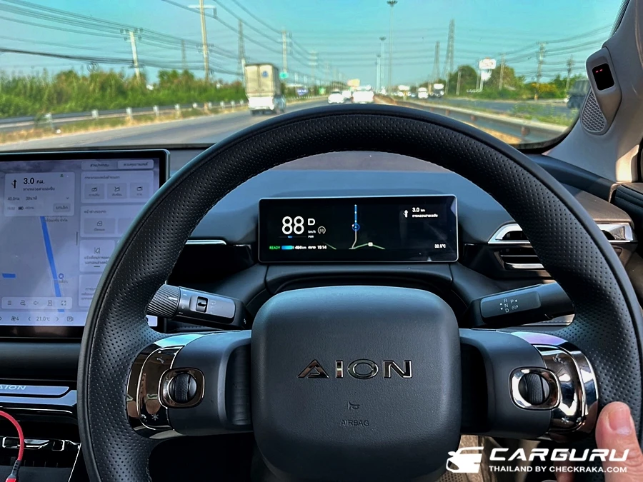 ข้อเสียของ AION V ไม่แสดงเปอร์เซ็นต์บนมาตรวัด ต้องกดเข้าไปดูในจอกลาง ไม่มี Trip A/B มีแค่การขับขี่แบบปัจจุบันเท่านั้น ฟังก์ชั่นใช้งานสำหรับผู้ขับขี่ที่อยู่ในจอกลางเกือบทั้งหมดทำให้ใช้งานไม่ถนัดและต้องปรับตัว สร้างความคุ้นเคยอยู่นานมาก กว่าจะใช้ได้ เช่น การปรับกระจกมองข้าง การเปิด-ปิดระบบช่วยเหลือขับขี่ ระบบเบรกมือไฟฟ้าหรือเบรกชั่วขณะ (Auto hold) และการปรับหรือเลือกรายการฟังเพลิงจากวิทยุ และ การเลือกเล่นเพลงจากสื่อต่าง ๆ ทั้ง จาก Bluetooth หรือจากสมาร์ทโพน ต้องตั้งค่าปุ่มลัดเท่านั้นจึงจะใช้งานได้สะดวก แต่ยังไม่สามารถเลือกสถานีวิทยุที่ตั้งค่าได้จากบนพวงมาลัย ต้องเข้าที่จอกลางเป็นหลัก