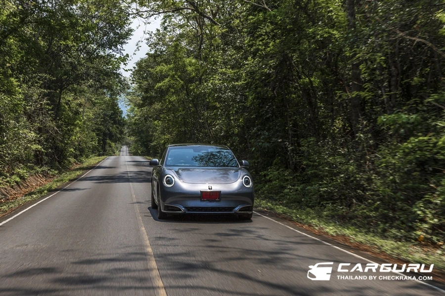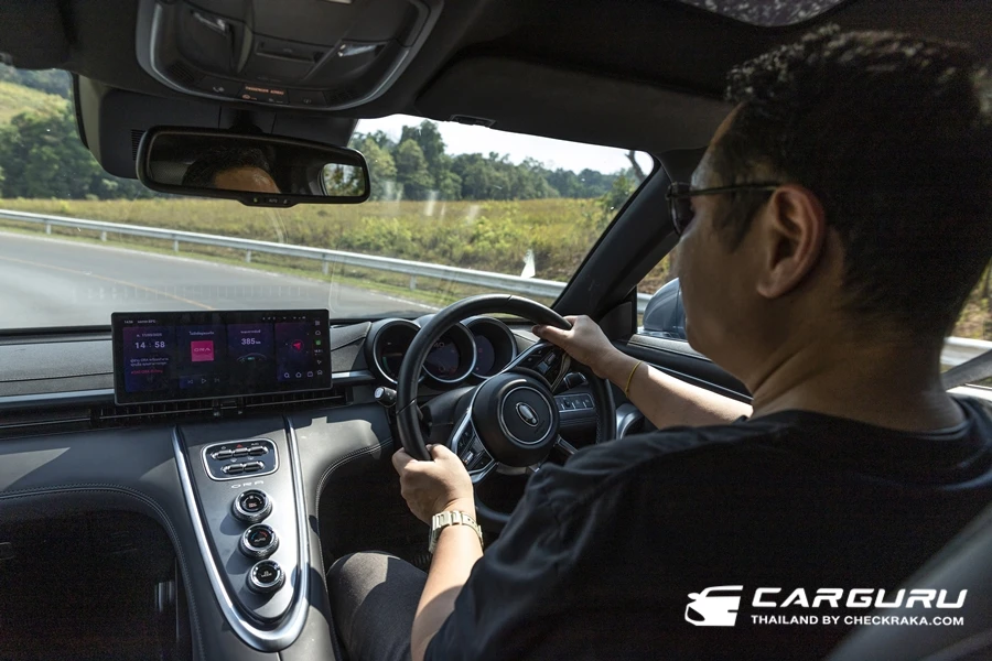 แม้จะขับผ่านสถานีชาร์จไฟหลายแห่งที่มีให้บริการมากมายตลอดเส้นทางนี้ แต่ด้วยระดับไฟที่ยังเหลืออีกมาก แม้จะขับขึ้นเขาอีกกี่เนิน ก็หมดห่วง พร้อมกับฟังเพลงเพราะๆ แดดแรงก็สบายด้วยแอร์เย็นฉ่ำ กับท่าขับขี่ที่ลงตัวลดอาการเมื่อยล้า