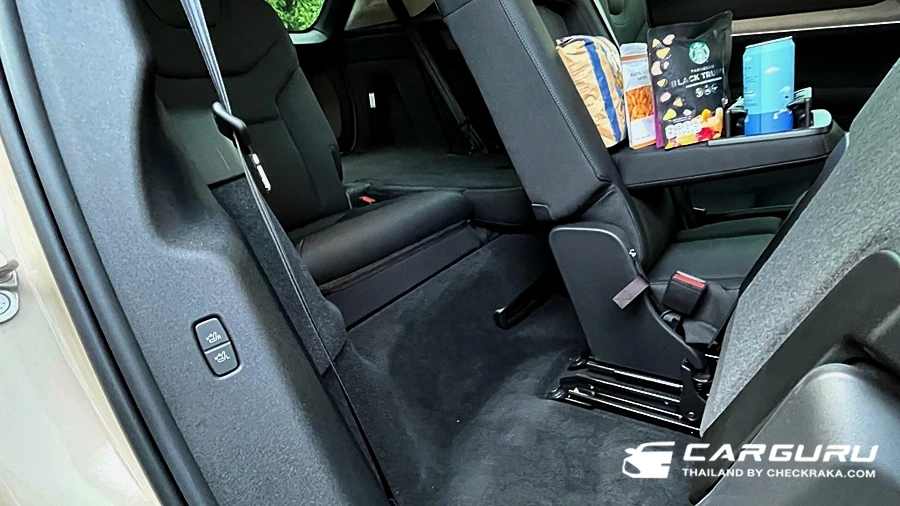 ตัวเบาะแถวที่ 3 มีสวิตช์พับไฟฟ้าติดตั้งไว้ตรงซุ้มล้อทั้ง 2 ฝั่ง สำหรับพับแบบราบเพิ่มพื้นที่ขนสัมภาระ อันถือว่าสะดวกดี และน่าจะได้งานบ่าย ๆ ด้วย สำหรับเจ้าของรถที่ต้องการ ขนถุงกอล์ฟ ขนของต่าง ๆ และไม่ต้องการใช้เบาะแถวที่ 3