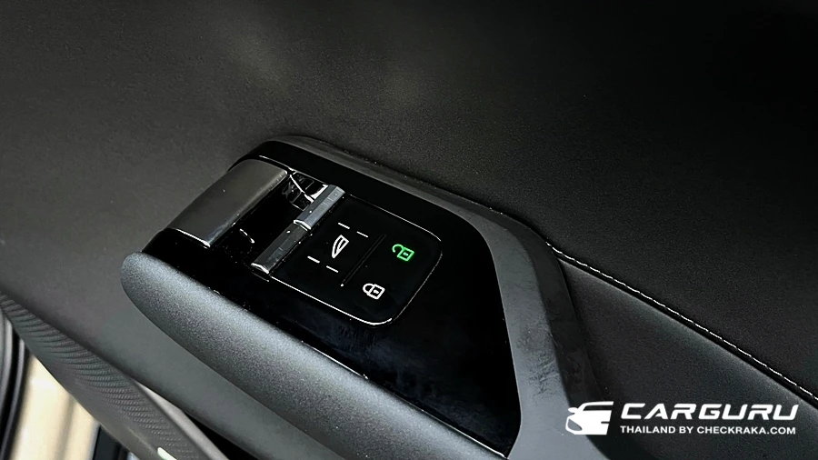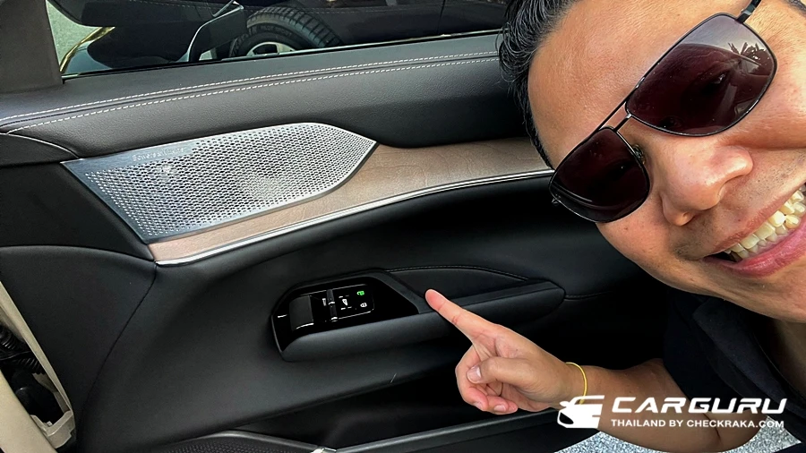 นอกจากนี้สวิตช์กระจกหน้าต่างฝั่งคนขับก็มีเพียง 2 อัน ต้องคอยเลือกกดปุ่ม เลือกว่าจะเปิดคู่หน้า หรือคู่หลัง เหมือนใน EX30 ตรงนี้แอบเสียดายมาก ๆ ครับ ค่าตัวแบบลักซูรี่ แต่ได้สวิตช์ใช้งานที่ลำบากไปหน่อย