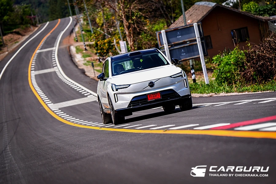 VOLVO EX90 SUV ในรุ่นที่ทดลองขับนั้นมีกำลังรวมสูงสุดอยู่ 517 แรงม้า และมีแรงบิดระดับ 910 นิวตันเมตร (เมื่อกดเป็น Performance) แต่ทว่า การออกตัวในโหมดปกตินั้น ยังคงความนุ่มนวลและสบาย สไตล์รถหรู เพื่อการเดินทางแบบผู้ดี แต่ถ้าต้องการความแรงแบบ "ซูเปอร์คาร์" ก็กดปุ่ม "PERFORMANCE" บริเวณด้านล่างของจอกลาง รถก็จะเพิ่มพลังและคันเร่งตอบสนองเร็วและไวมากขึ้น ซึ่งความจริงแล้วแค่โหมดปกติ หากเติมคันเร่งแบบเนียน ไม่คิกส์ดาวน์ รถก็ให้อัตราเร่งไม่แพ้กันเลยครับ นั่นคือ การตอบสนองในช่วงแรกของการเหยียบคันเร่งแตกต่างกันเท่านั้นเอง
