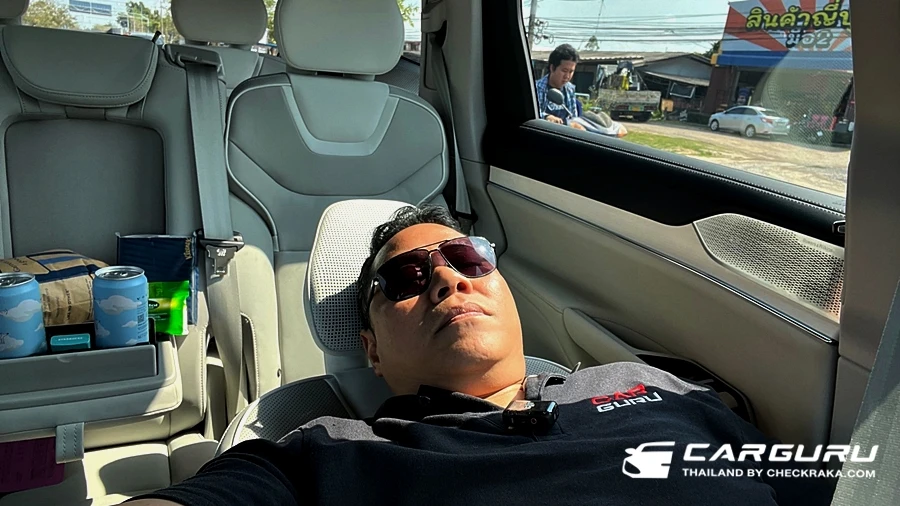 มาถึงเบาะนั่งคู่หน้าปรับไฟฟ้าได้หลายทิศทาง สามารถปรับเอนได้แบบราบเกือบ 180 องศา พร้อมระบบนวดและเป่าลม ส่วนเบาะสามารถขยับเพิ่มพื้นที่รองต้นขาได้ แต่ใช้มือปรับ โดยคู่หน้านับว่าเป็นเบาะที่นั่งได้สบายที่สุด สัมผัสนุ่ม ไม่ร้อน เพราะลมเป่า และสรีระที่ลงตัวพอดีครับ