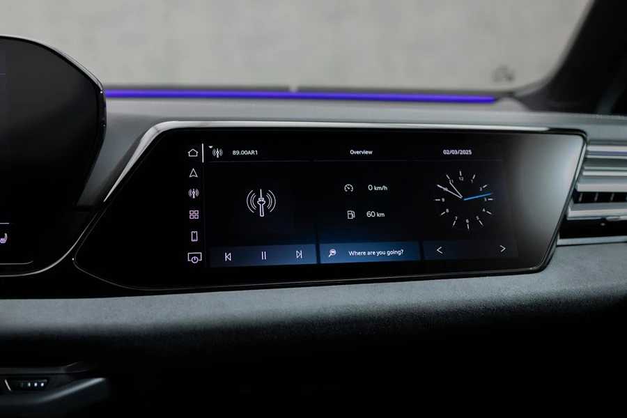 หน้าจอแบบสัมผัส MMI front passenger ขนาด 10.9 นิ้ว ที่ให้ผู้โดยสารด้านหน้าสามารถควบคุมฟังก์ชันต่างๆ ได้อย่างสะดวก เพลิดเพลินไปกับระบบเครื่องเสียงระดับพรีเมียม จาก Bang & Olufsen ให้เสียงอันทรงพลังด้วยกำลังขับถึง 685 วัตต์ 16 ตำแหน่ง และยังมาพร้อมระบบเสียง 3 มิติ ที่ช่วยให้ได้สุนทรียภาพมากขึ้นในการขับขี่ มอบประสบการณ์ฟังเพลงคุณภาพเสียงระดับสูง สร้างบรรยากาศในห้องโดยสารสุดพิเศษกับ dynamic interaction light แถบไฟเรืองแสงบนแผงหน้าปัดที่พาดยาวจากฝั่งผู้ขับขี่ถึงฝั่งผู้โดยสาร สามารถแสดงสถานะการชาร์จ และเมื่อเปิดไฟเลี้ยว