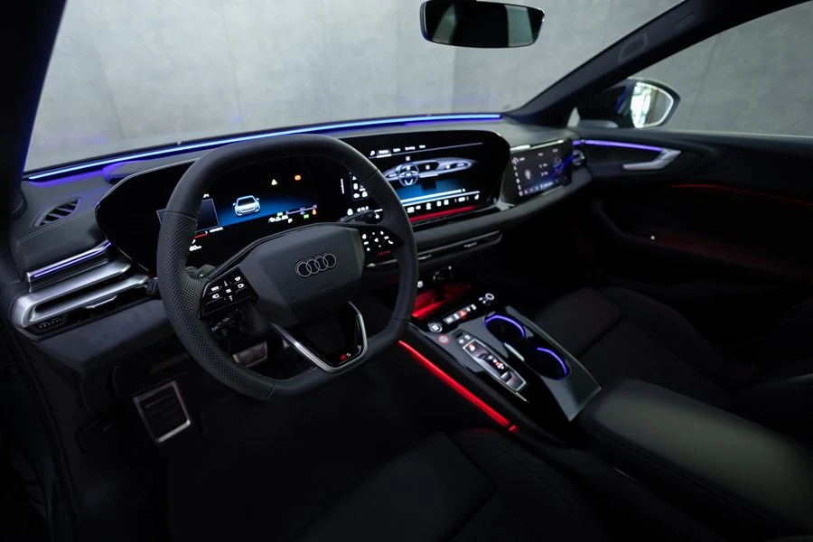 ล้ำสมัยด้วยหน้าจอแสดงผล Curved MMI Panoramic Display ที่โค้งเข้าหาผู้ขับขี่เพื่อการใช้งานที่ง่ายและสะดวกขึ้น มาพร้อม Audi virtual cockpit plus ขนาด 11.9 นิ้ว และหน้าจอระบบสัมผัส MMI touch display ขนาด 14.5 นิ้ว Smart Door Pannel แผงควบคุมอัจฉริยะที่ประตูข้างคนขับ ซึ่งเป็นศูนย์รวมของฟังก์ชันสำคัญต่างๆ ในรถให้ควบคุมได้ง่ายเพียงปลายนิ้ว มอบประสบการณ์ที่เหนือกว่าในรุ่น Audi A5 Tech Pro ด้วยหลังคากระจกพาโนรามิค (Panoramic glass roof with switchable transparency) ครั้งแรกใน Audi A5 ที่มาพร้อม UV Sun Screen เพื่อช่วยป้องกันแสงแดดและรังสียูวี และยังสามารถปรับระดับความโปร่งแสงได้ถึง 6 รูปแบบ