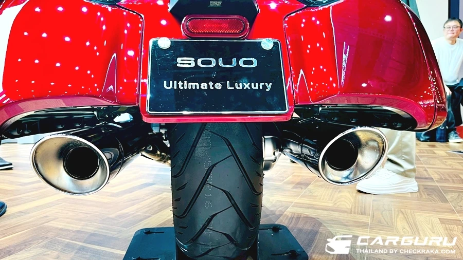 GWM SOUO เรียกว่าเป็น Touring Bike คันใหญ่ ที่ทรงคุ้มตา ซึ่งไม่แปลกครับ เพราะเค้าคุยกับต้นฉบับเรียบร้อย และยังจ้างโรงงานเดียวกันในประเทศจีนผลิตให้! แต่ในความเหมือน ย่อยมีความแตกต่าง เริ่มที่ ขุมพลังแบบ Flat-8 หรือ 8 สูบ นอนยัน BOXER ความจุ 2,000 ซีซี เสียงหวานนุ่มดุดันในตัว พร้อมเทคโนโลยีต่าง ๆ มากมาย เรียกได้ว่า แทบจะยกมาจากรถยนต์มาใส่ในรุ่นนี้แบบจัดเต็ม