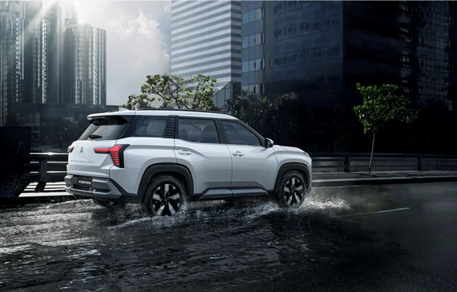 เส้นสายด้านข้างสะท้อนถึงความคล่องตัว ส่วนท้ายโดดเด่นด้วยแนวคิด Hexaguard Horizon รูปทรงหกเหลี่ยมที่ได้รับแรงบันดาลใจจากยางอะไหล่ด้านหลังรถ Pajero เด่นสะดุดตา ไฟ LED รูปทรงตัว T และไฟท้ายด้านหลัง และตัวล้อจะให้ขนาด 18 นิ้ว โดยมีมีมิติตัวถัง ความยาว 4,680 มม., ความกว้าง 1,840 มม. และความสูง 1,780 มม.