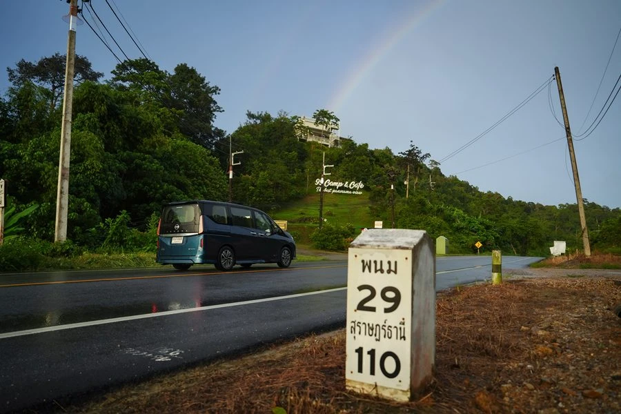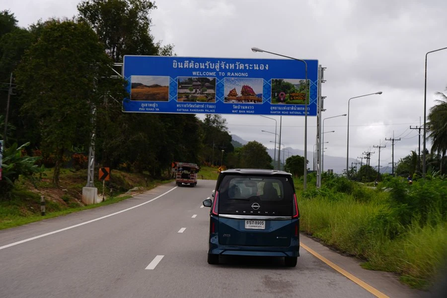 การเดินทางเริ่มต้นจากสนามบินชุมพร มุ่งหน้าสู่ จ.ระนอง เส้นทางช่วงแรกจะยังคงเป็นไฮเวย์ ทางโค้งกว้างๆ ให้ได้พิสูจน์เรื่องความเร็ว สลับกับทางขึ้นลงเนินเขายาวๆ ให้ได้ทดสอบการใช้งานของเทคโนโลยี e-POWER และฟีเจอร์สำคัญๆ เช่น e-Pedal Step โดยมีไฮไลต์สถานที่สำคัญจุดแรก ได้แก่ น้ำตกปุญญบาล อุทยานแห่งชาติลำน้ำกระบุรี