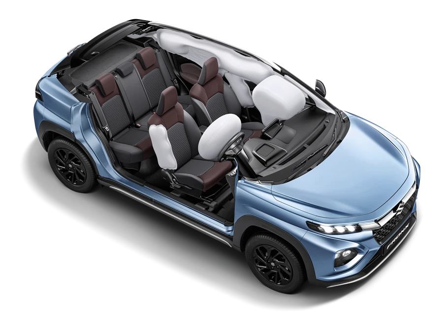 ด้านความปลอดภัยของรถยนต์ ALL NEW SUZUKI FRONX ในทุกรุ่น มอบความอุ่นใจด้วยถุงลมนิรภัย SRS มากถึง 6 ตำแหน่ง
