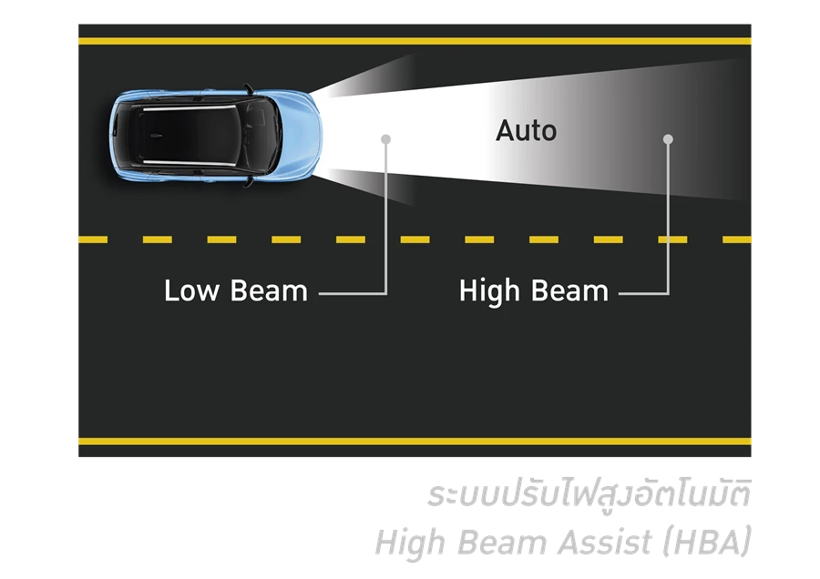 - ระบบปรับไฟสูงอัตโนมัติ High Beam Assist (HBA)