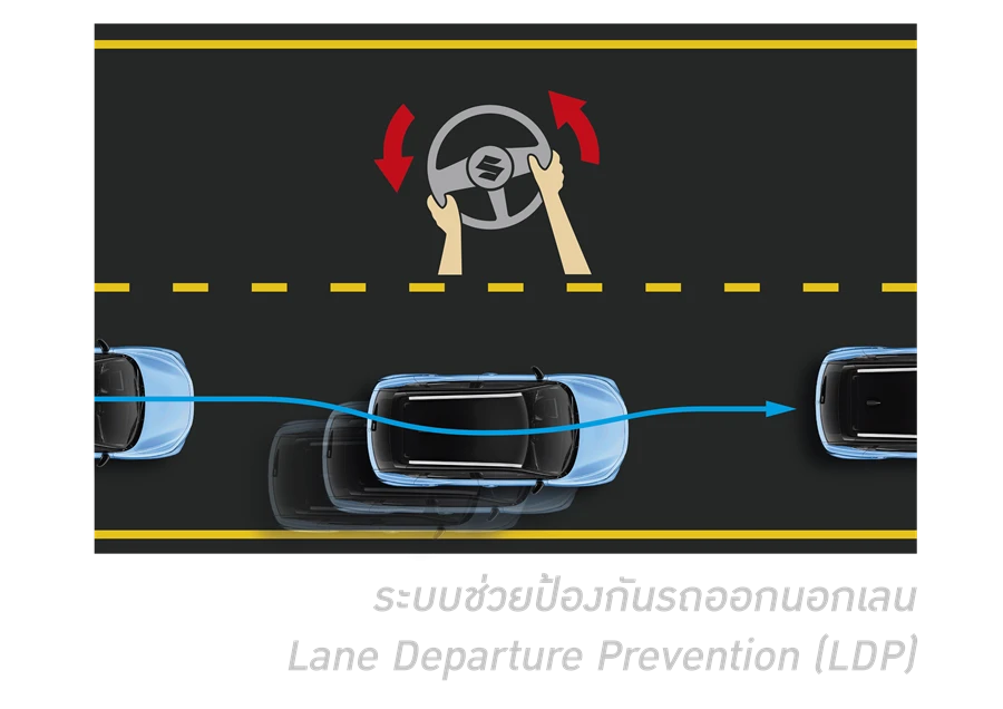 - ระบบช่วยป้องกันรถออกนอกเลน Lane Departure Prevention (LDP)