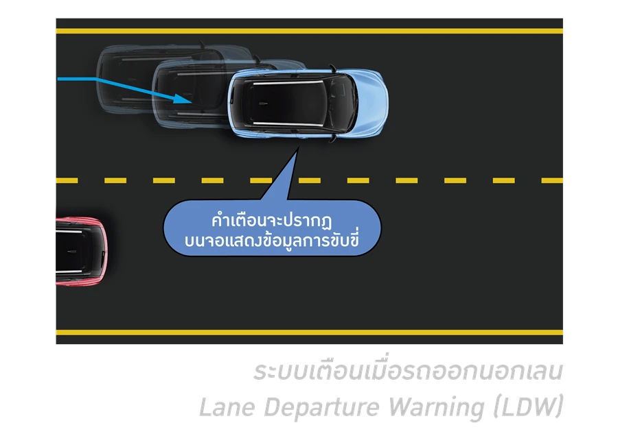 - ระบบเตือนเมื่อรถออกนอกเลน Lane Departure Warning (LDW)
