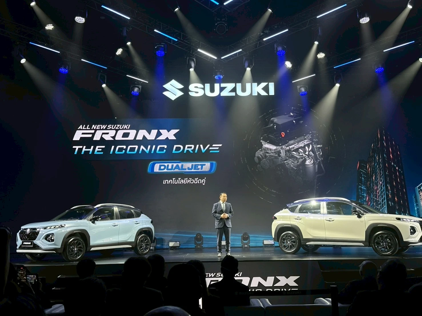 นายวัลลภ ตรีฤกษ์งาม รองประธานกรรมการบริหาร บริษัท ซูซูกิ มอเตอร์ (ประเทศไทย) จำกัด กล่าวว่า “ALL NEW SUZUKI FRONX ยนตรกรรมสไตล์สปอร์ตแบบ SUV ถูกนำเสนอภายใต้แนวคิด “THE ICONIC DRIVE นิยามใหม่ของการขับขี่...ในแบบที่เป็นคุณ” ที่จะสะท้อนความเป็นตัวตนและตอบรับทุกไลฟ์สไตล์ในการขับขี่ เพราะถูกพัฒนาขึ้นมาเพื่อตอกย้ำความสำเร็จในการนำเสนอผลิตภัณฑ์ที่ตรงใจผู้บริโภค ด้วยจุดเด่นของสมรรถนะ ความคล่องตัวทุกการขับขี่ ทั้งยังมาพร้อมระบบความปลอดภัยครบครัน สะท้อนให้เห็นถึงความมุ่งมั่นและตั้งใจที่จะนำเสนอผลิตภัณฑ์คุณภาพและงานบริการหลังการขายที่ได้มาตรฐานส่งต่อถึงมือผู้บริโภคทุกท่าน