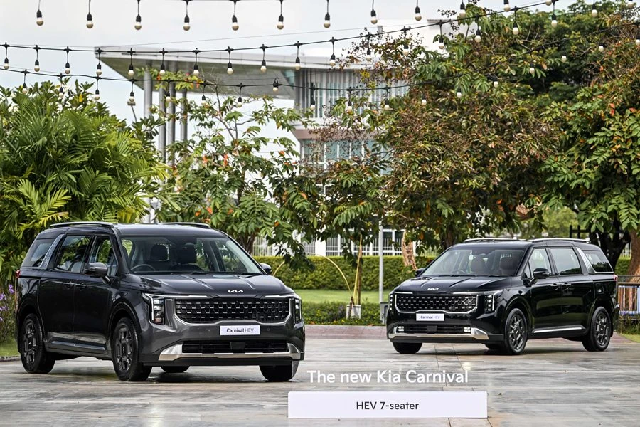 The new Kia Carnival HEV 7-seater จำหน่ายในประเทศไทย 2 รุ่นย่อย ได้แก่ The new Kia Carnival HEV 7-seat Luxury ราคา 2,699,000 บาท และ The new Kia Carnival HEV 7-seat Premium ราคา 2,499,000 บาท มาพร้อมกับดีไซน์ที่ได้รับการปรับโฉมใหม่ให้มีความโฉบเฉี่ยวยิ่งขึ้น โดดเด่นไม่ซ้ำใคร ทั้งด้านหน้าและด้านหลัง สะท้อนทั้งความหรูหราและความแข็งแกร่งในสไตล์ SUV มาพร้อมฟีเจอร์ต่าง ๆ ที่น่าสนใจ