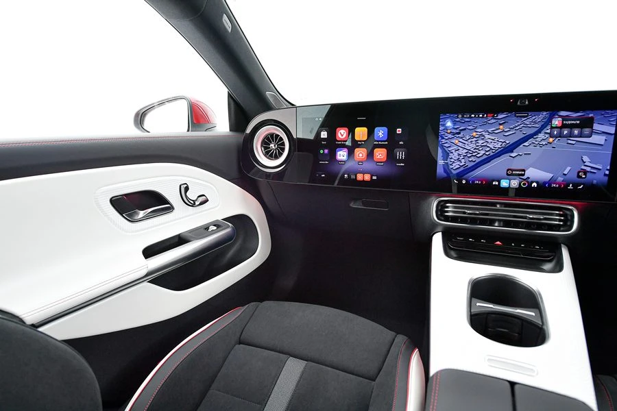 - จอฝั่งคนขับ – แสดงข้อมูลความเร็ว ระบบช่วยขับ และรายละเอียดระบบความปลอดภัย (รวมถึงการตรวจจับคนเดินถนน รถรอบข้าง ฯลฯ)