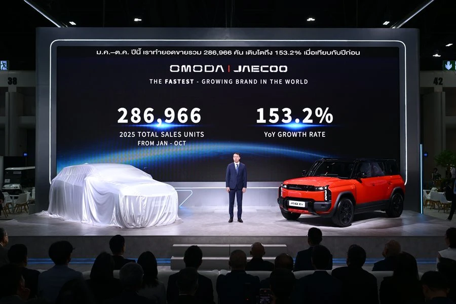 คุณเซดริก ชุย ประธาน บริษัท โอโมดา แอนด์ เจคู (ประเทศไทย) กล่าวว่า “OMODA & JAECOO ประสบความสำเร็จอย่างก้าวกระโดดด้วยยอดขายทั่วโลกกว่า 286,966 คันในช่วง 10 เดือนแรกของปี 2568 สะท้อนให้เห็นถึงความเชื่อมั่นของผู้บริโภคที่มีต่อแบรนด์ของเรา สำหรับแผนการดำเนินงานในประเทศไทย เรามีแผนเริ่มการผลิตรถยนต์ไฟฟ้ารุ่นแรกที่โรงงานในประเทศไทยในเดือนกุมภาพันธ์ 2569 ด้วยกำลังการผลิตประมาณ 80,000 คันต่อปี การเปิดตัวนวัตกรรมยานยนต์ไฟฟ้าในครั้งนี้ถือเป็นก้าวสำคัญของเราในการมุ่งสู่การเป็นผู้นำด้านยานยนต์ไฟฟ้าในภูมิภาค พร้อมตอบสนองความต้องการของผู้บริโภคชาวไทยที่ให้ความสำคัญกับเทคโนโลยียานยนต์ที่เป็นมิตรต่อสิ่งแวดล้อม”