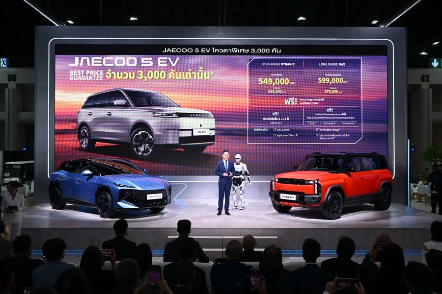 OMODA & JAECOO (อ่านว่า โอโมด้า แอนด์ เจคู่) ผู้นำด้านนวัตกรรมยานยนต์พลังงานไฟฟ้าระดับพรีเมียม ตอกย้ำความเป็นผู้นำด้านเทคโนโลยียานยนต์ไฟฟ้า เปิดตัว JAECOO 6T EV ยานยนต์ไฟฟ้าอเนกประสงค์สไตล์สปอร์ต (Sport SUV) รุ่นล่าสุดของตระกูล JAECOO เปิดให้จองในราคาพิเศษ 1,049,000 บาท* จากราคาปกติ 1,099,000 บาท จำกัดเพียง 250 คันเท่านั้น พร้อมจัดแสดงรถต้นแบบรุ่นอื่น ๆ เป็นครั้งแรกในประเทศไทย ภายในงานมหกรรมยานยนต์ ครั้งที่ 42