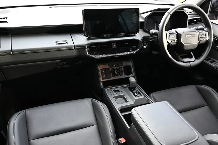 TOYOTA TRAVO-e มากับดีไซน์ภายใน Robust Simplicity ที่เน้น ความเรียบง่ายแต่ทรงพลัง ผสมผสานความแข็งแกร่งทนทาน เข้ากับฟังก์ชันการใช้งานที่ครบครันและใช้งานง่าย เน้นวัสดุที่ดูดีและทำความสะอาดง่าย เช่น เบาะผ้า, หน้าจอสัมผัสทันสมัย, และเทคโนโลยีที่อำนวยความสะดวก (Apple CarPlay, Android Auto) เพื่อให้รถใช้งานได้จริงในทุกสถานการณ์ และฟังก์ชันการใช้งานที่หลากหลาย เช่น Adaptive Cruise Control, ระบบเตือนต่าง ๆ, Toyota Safety Sense และยังคงแนวคิด รถใช้งาน ด้วยปุ่มต่าง ๆ ยังปรับได้ง่าย ไม่ต้องจิ้มจอทุกอย่าง