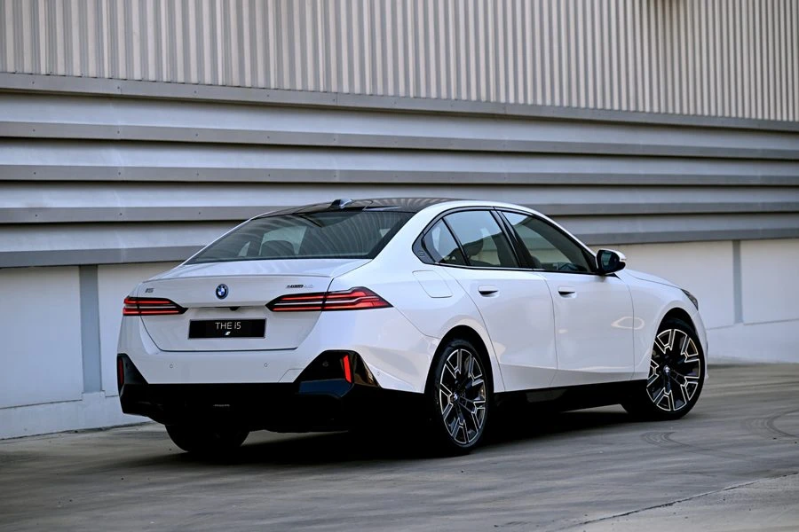 รูปลักษณ์ภายนอกของบีเอ็มดับเบิลยู i5 eDrive40 M Sport ใหม่ เติมบุคลิกความสปอร์ตมาเต็มขั้นด้วยชุดแต่ง M Sport ซึ่งประกอบด้วยสปอยเลอร์หลังดีไซน์ M สีเดียวกับตัวรถ คาลิเปอร์เบรก M Sport สีน้ำเงิน Dark Blue Metallic และล้ออัลลอย M Aerodynamic ขนาด 20 นิ้ว