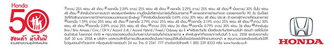 สอบถามรายละเอียดเพิ่มเติมได้ที่โชว์รูมฮอนด้าทั่วประเทศ หรือศูนย์บริการฮอนด้า 24 ชม. โทร 0 2341 777 ต่างจังหวัดโทรฟรี 1 800 239 8333 หรือ www.honda.co.th