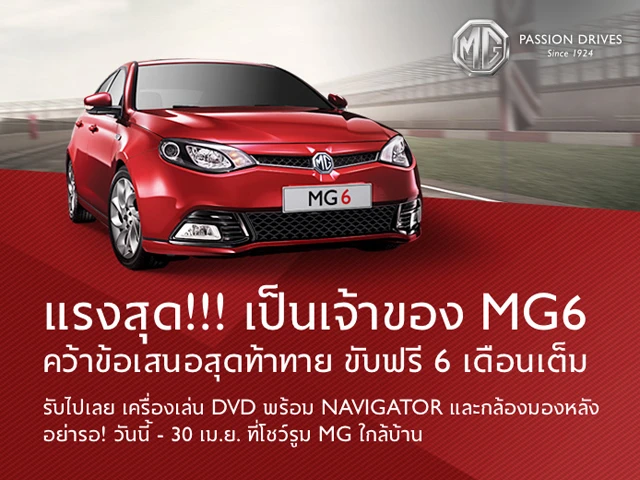 แรงสุด!! เป็นเจ้าของ MG6 คว้าข้อเสนอสุดท้าทาย ขับฟรี 6 เดือนเต็ม