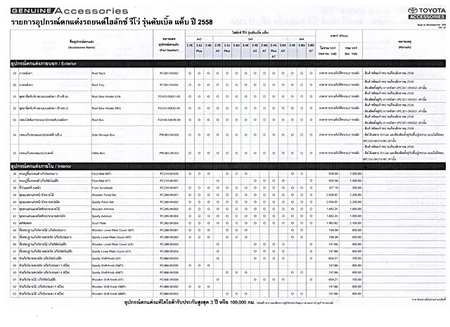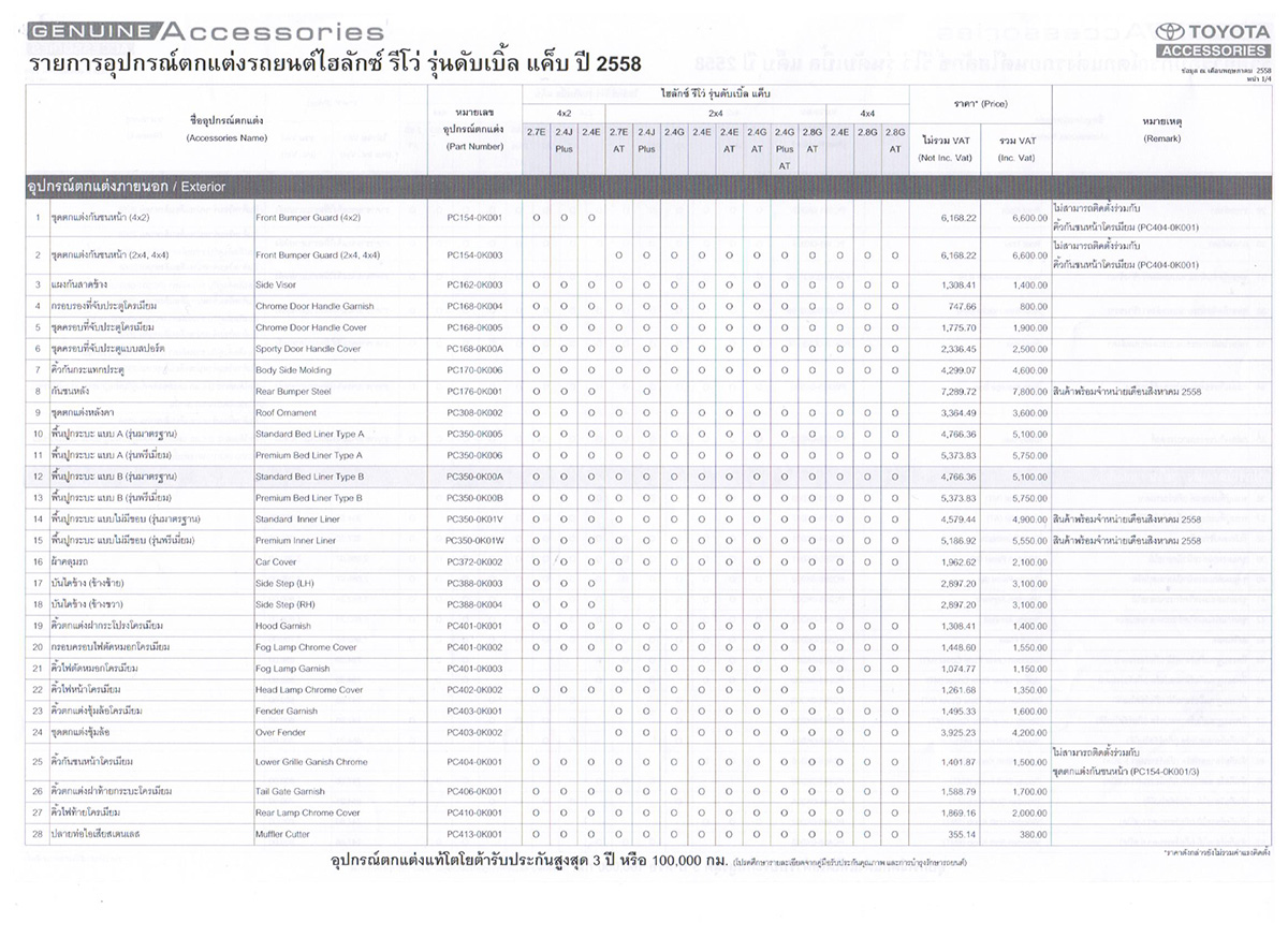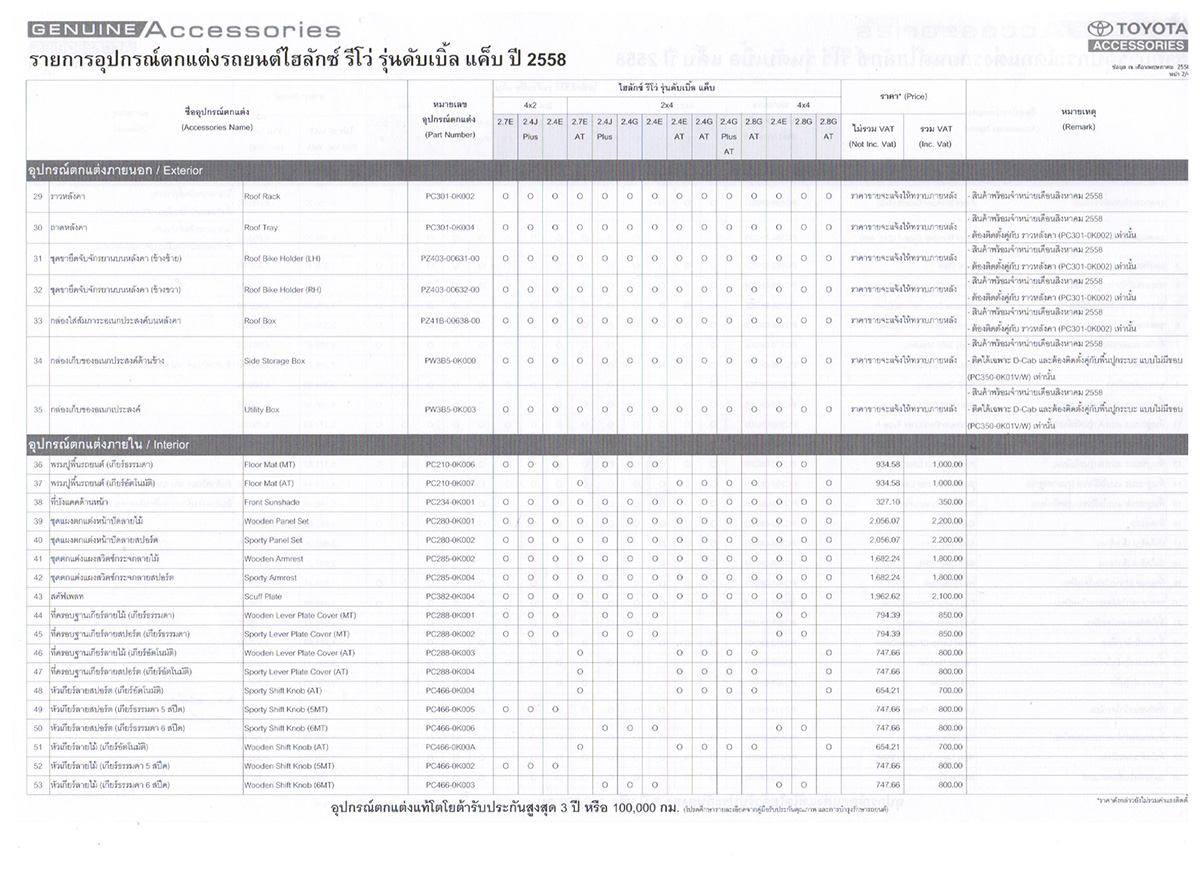อุปกรณ์ตกแต่งโตโยต้า ไฮลักซ์ รีโว่ รุ่นมาตรฐาน ปี 2558